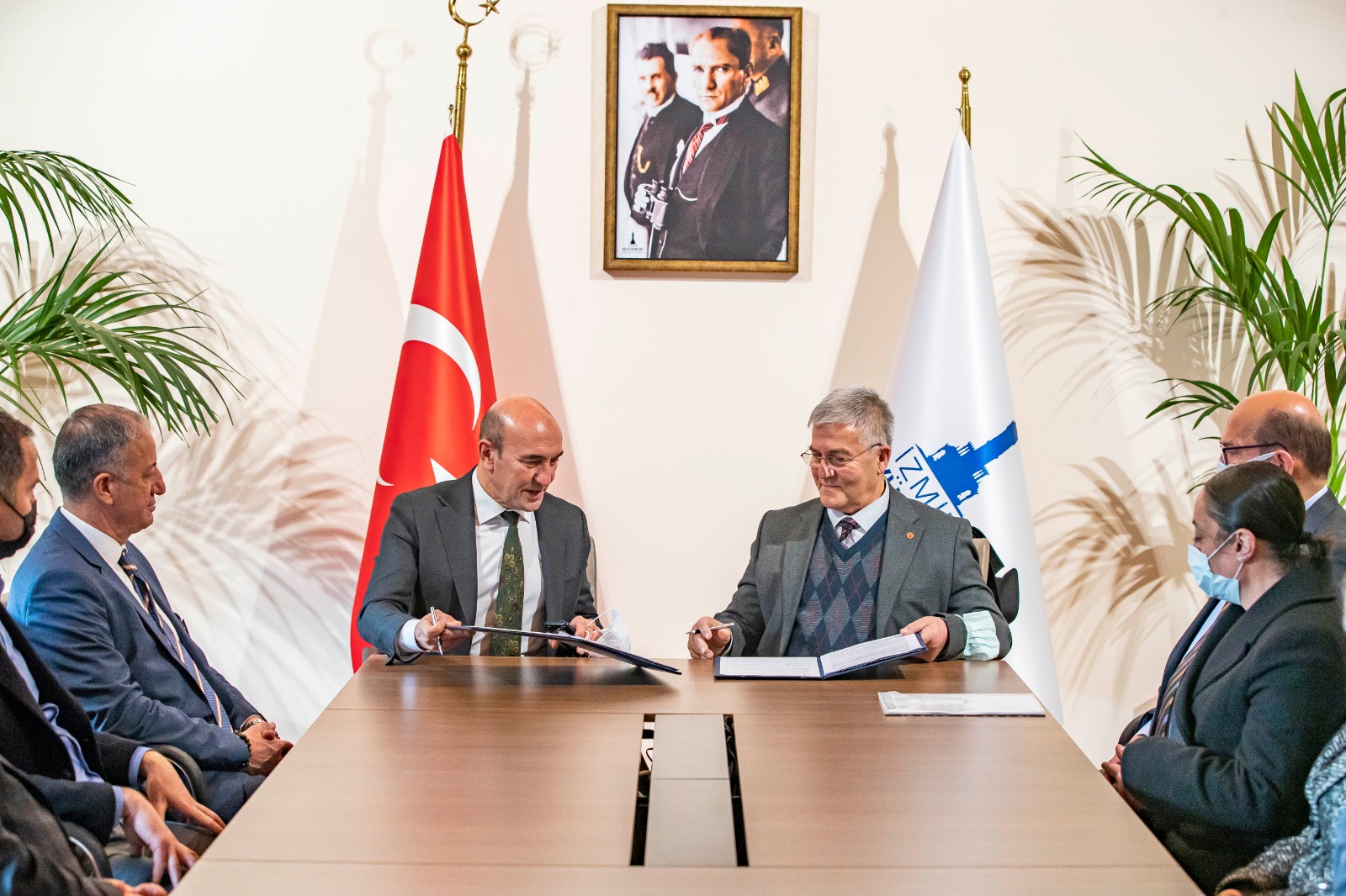 2 yılı kapsayan ve 82 sendikalı personeli ilgilendiren sözleşme, İzmir Büyükşehir Belediye Başkanı Tunç Soyer ile Dev Turizm-İş Sendikası Genel Başkanı Mustafa Yahyaoğlu arasında imzalandı. İzmir Büyükşehir Belediyesi Egemenlik Evi Toplantı Salonu’nda düzenlenen imza törenine İzmir Büyükşehir Belediyesi Genel Sekreter Yardımcısı Ertuğrul Tugay, İzmir Büyükşehir Belediyesi Gençlik ve Spor Dairesi Başkanı Hakan Orhunbilge, İzmir Büyükşehir Belediyesi Gençlik ve Spor Kulübü Derneği Başkanı Ersan Odaman ve işçiler katıldı.