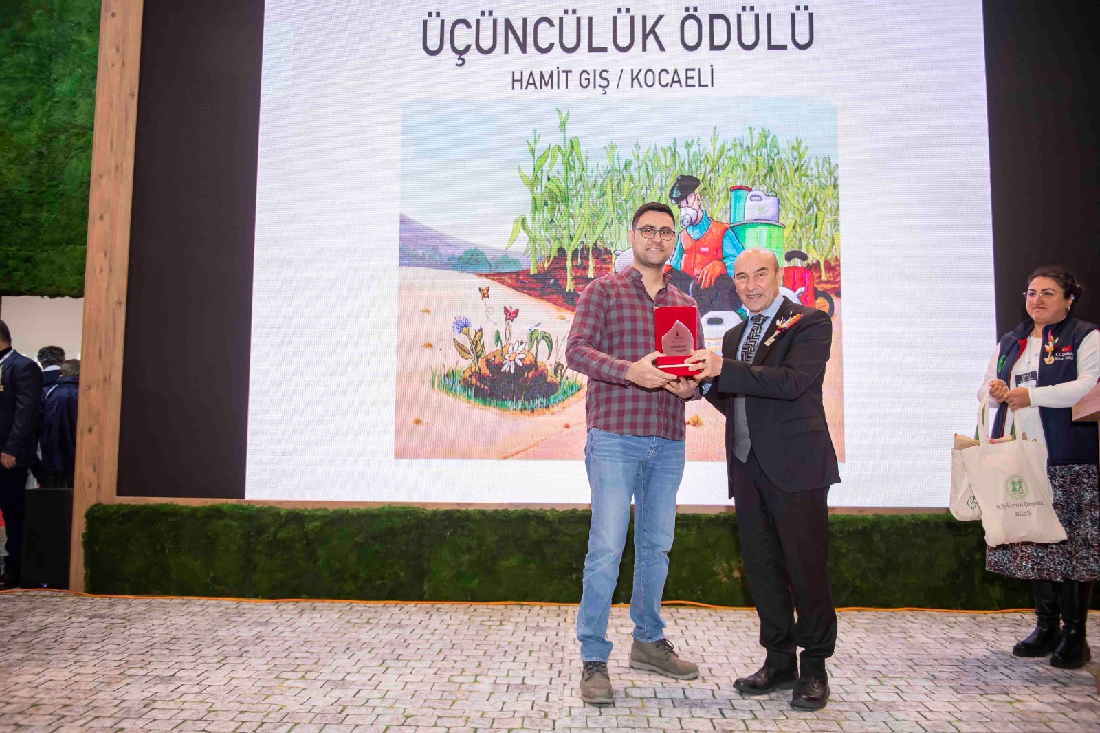 İzmir Büyükşehir Belediyesi’nin “Başka Bir Tarım Mümkün” temasıyla bu yıl ilkini düzenlediği ulusal karikatür yarışmasında dereceye girenler ödüllerini Agroexpo-17. Uluslararası Tarım ve Hayvancılık Fuarı etkinlikleri kapsamında Fuar İzmir’de aldı. Başkan Tunç Soyer birincilik ödülünü Kürşat Zaman’a, ikincilik ödülünü Cemalettin Güzeloğlu’na, üçüncülük ödülünü ise Hamit Gış’a takdim etti.