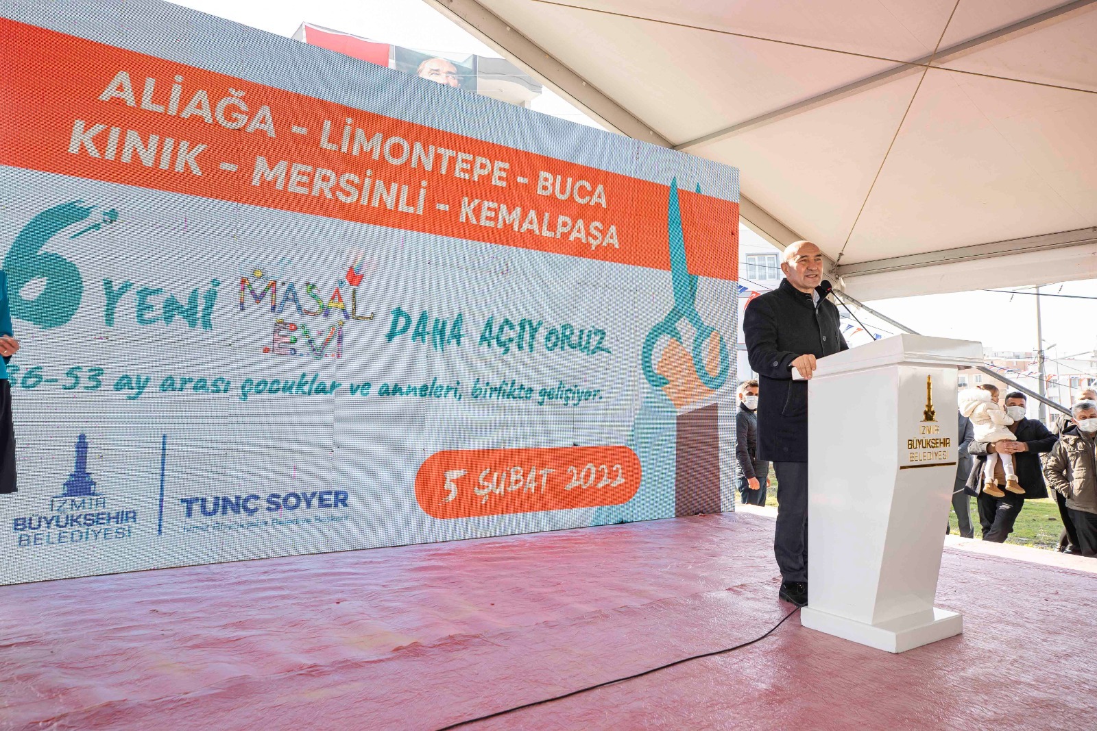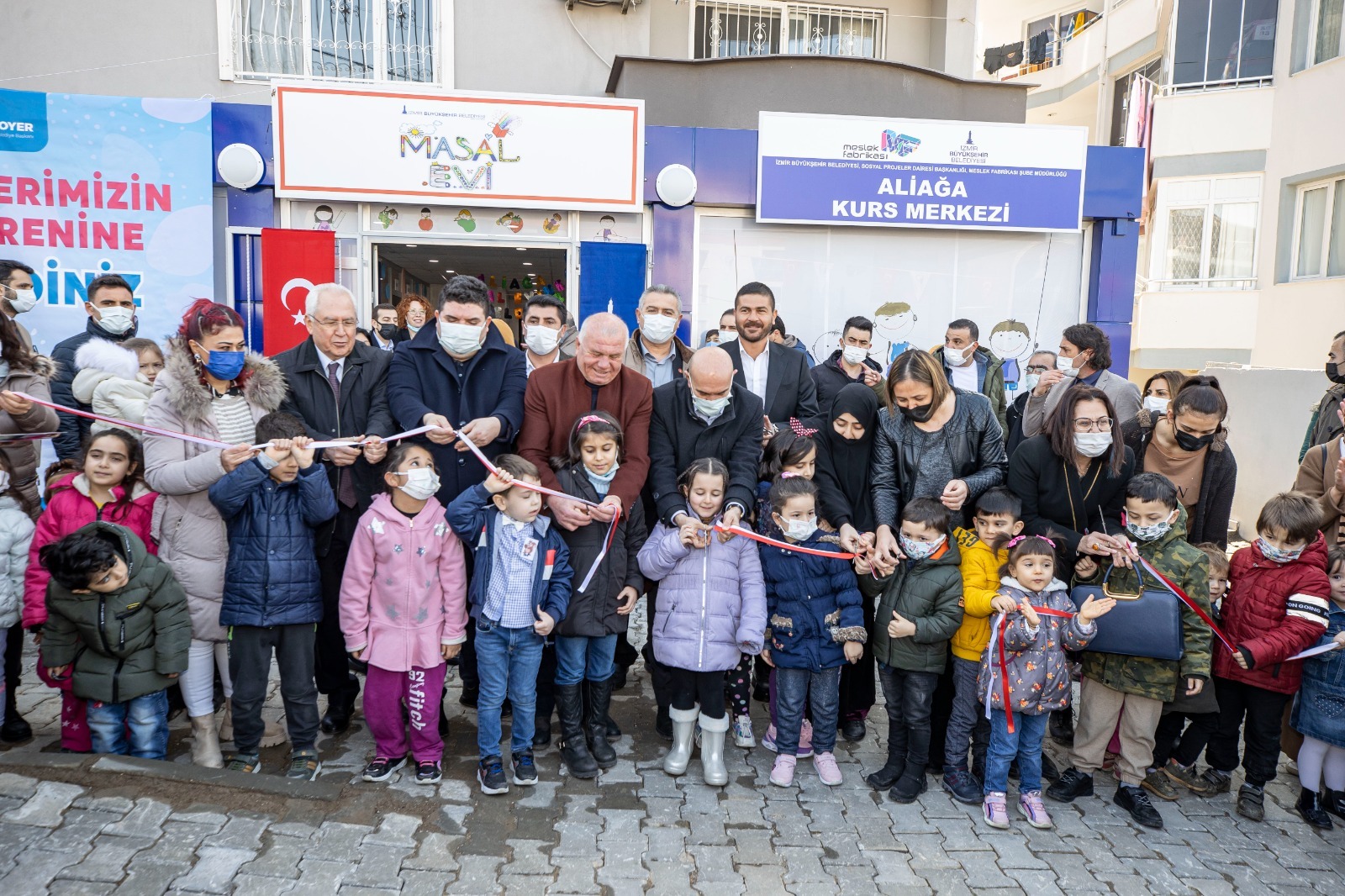 İzmir Büyükşehir Belediye Başkanı Tunç Soyer’in çocukların sosyal gelişimlerine katkı sunmak ve annelere mesleki beceri kazandırarak işgücüne katılımlarını desteklemek için hayata geçirdiği Masal Evi projesi kapsamında bugün 6 yeni merkez daha açıldı. Böylelikle İzmir’deki Masal Evi sayısı on ikiyi buldu. Aliağa Masal Evi’nde yapılan toplu açılış töreninde Başkan Soyer, Masal Evi sayısını İzmir genelinde yirmi beşe çıkaracaklarını söyledi.