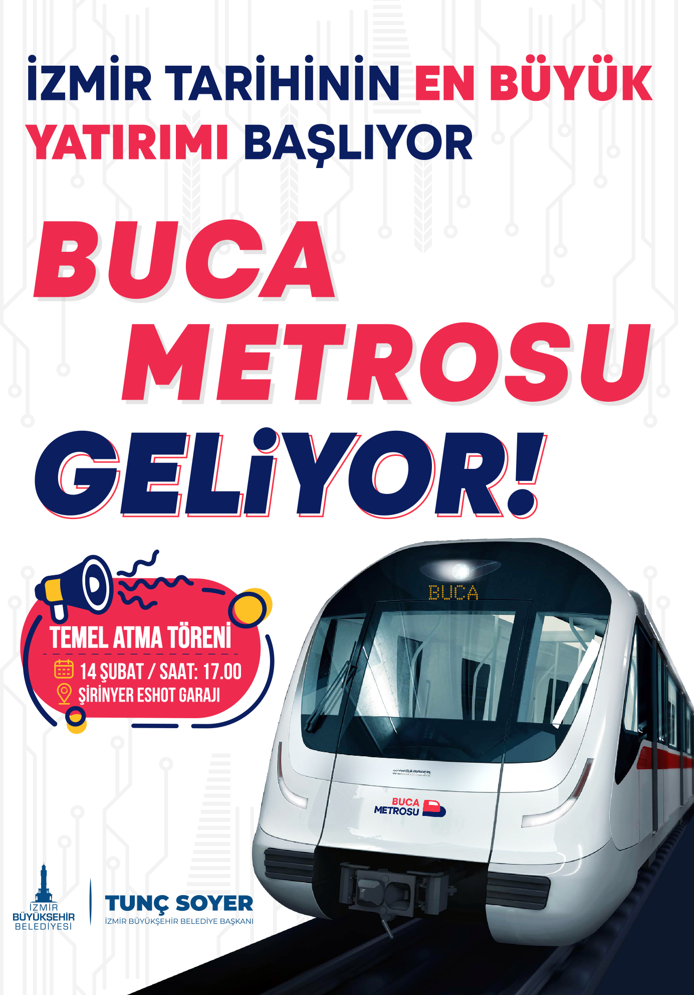 İzmir Büyükşehir Belediyesi Sevgililer Günü’nde kente büyük bir hediye vermeye hazırlanıyor. Kent tarihinin en büyük raylı sistem yatırımı Buca Metrosu’nun temeli 14 Şubat’ta törenle atılacak. Törene Cumhuriyet Halk Partisi Genel Başkanı (CHP) Kemal Kılıçdaroğlu katılacak. Buca Metrosu, İzmir Büyükşehir Belediyesi’nin kendi ekonomik gücüyle inşa edilecek.