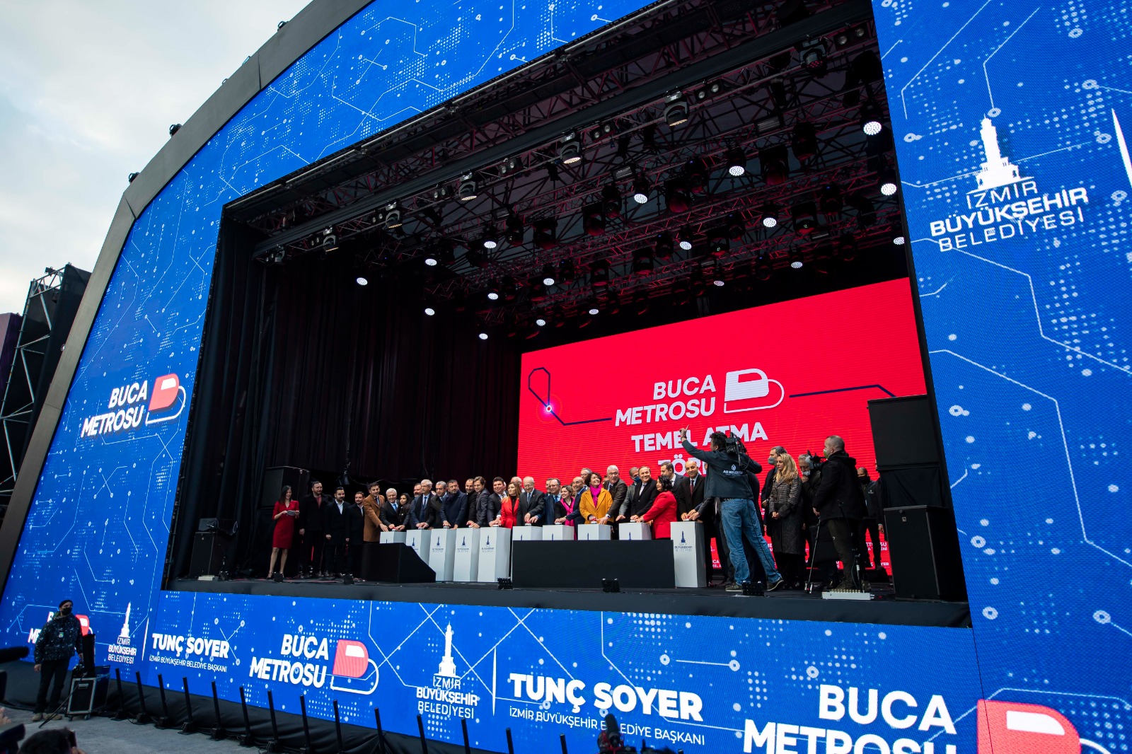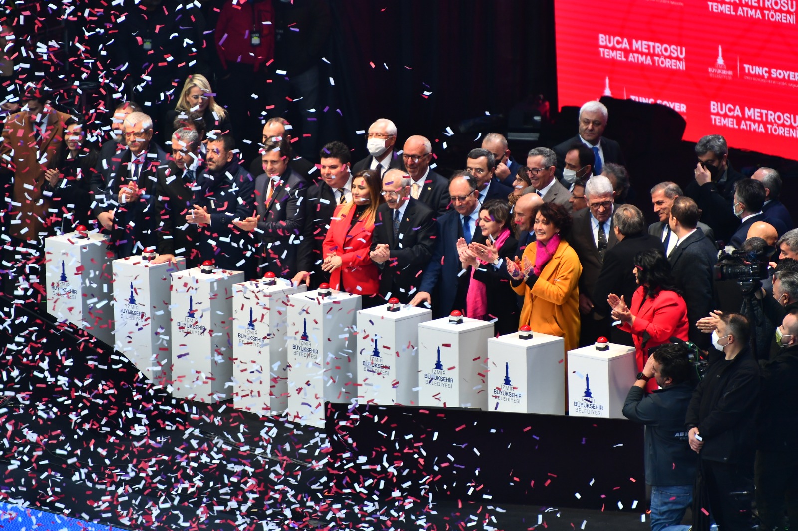 İzmir tarihi bir güne tanıklık etmenin gururunu yaşıyor. Kentin en büyük yatırımı Buca Metrosu’nun temeli bugün Buca Şirinyer’de kurulan tören alanında Cumhuriyet Halk Partisi (CHP) Genel Başkanı Kemal Kılıçdaroğlu tarafından atıldı. Törene Kılıçdaroğlu’nun yanı sıra ev sahibi İzmir Büyükşehir Belediye Başkanı Tunç Soyer ve eşi Neptün Soyer, CHP yönetimi, milletvekilleri, ilçe belediye başkanları, partilerin il başkanları, meslek odalarının, sendikaların, kooperatiflerin, sivil toplum örgütlerinin temsilcileri ve on binlerce İzmirli katıldı.