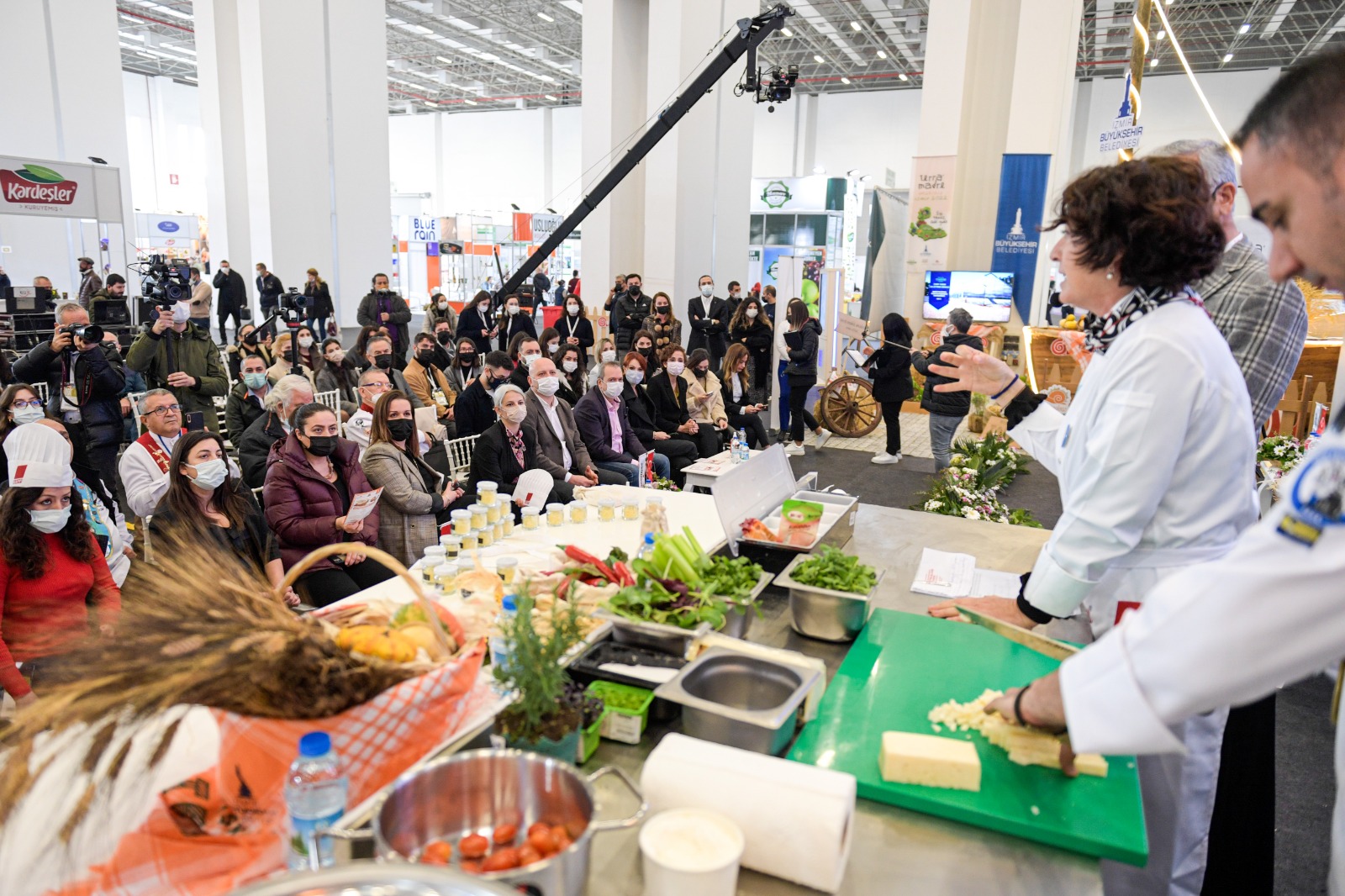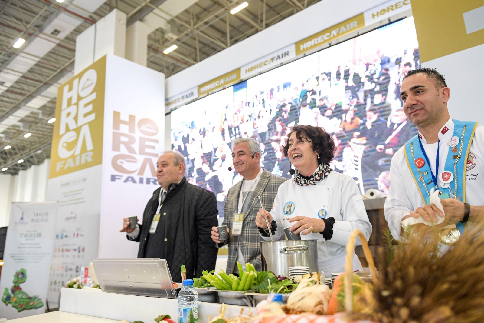 İzmir Büyükşehir Belediye Başkanı Tunç Soyer'in fuarlar kenti İzmir vizyonu doğrultusunda çalışmalarını sürdüren İzmir Büyükşehir Belediyesi, fuarlara ev sahipliği yapmaya devam ediyor. GL Platform Fuarcılık tarafından Fuar İzmir’de düzenlenen HORECA Fair – 3. Uluslararası Otel Ekipmanları, Ağırlama Konaklama Teknolojileri ve Ev Dışı Tüketim Fuarı, söyleşi ve workshoplara ev sahipliği yapıyor. Fuar programı kapsamında yapılan “Yerliyse Yeriz” konulu söyleşide İzmir Köy-Koop Birlik Başkanı Neptün Soyer ile Herkes İçin Acil Sağlık Derneği Başkanı Uzm. Dr. Ülkümen Rodoplu, yarımada bölgesinin önemli ürünlerinden oluşan sakızlı tarhana çorbası yaptı. Türkiye Aşçılar Federasyonu ve İzmir Aşçılar Derneği destekleriyle düzenlenen söyleşiyi GL Platform Fuarcılık Genel Müdürü Gül Ceylan, İZFAŞ Genel Müdürü Canan Karaosmanoğlu Alıcı, Yazar Nedim Atilla, aşçılar, üreticiler ve yurttaşlar da takip etti.