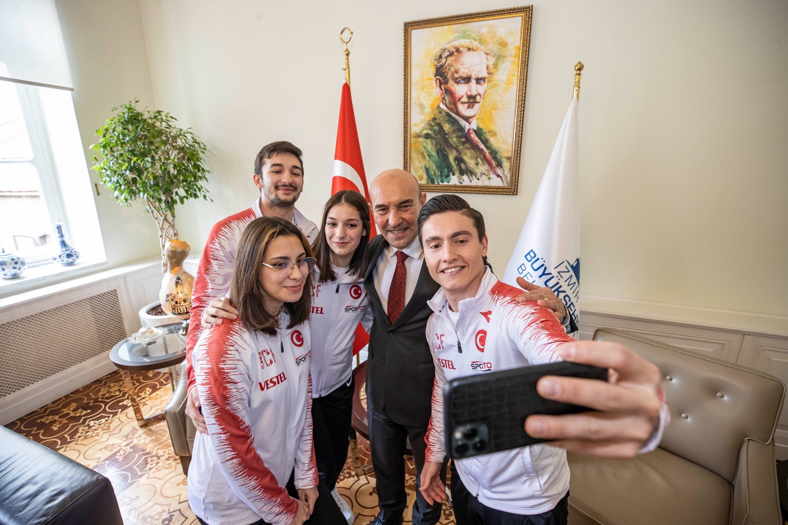 İzmir Büyükşehir Belediye Başkanı Tunç Soyer, cimnastik dünya şampiyonu Sena Elçin Karakaş ve Sıla Karakuş ile yarışmada derece elde eden Hüseyin Engin Yontucu ve Gürkan Mutlu’yu ağırladı. Soyer, “Bu tür şampiyonluklar, geleceğe dair umudumuzu büyütüyor” dedi.