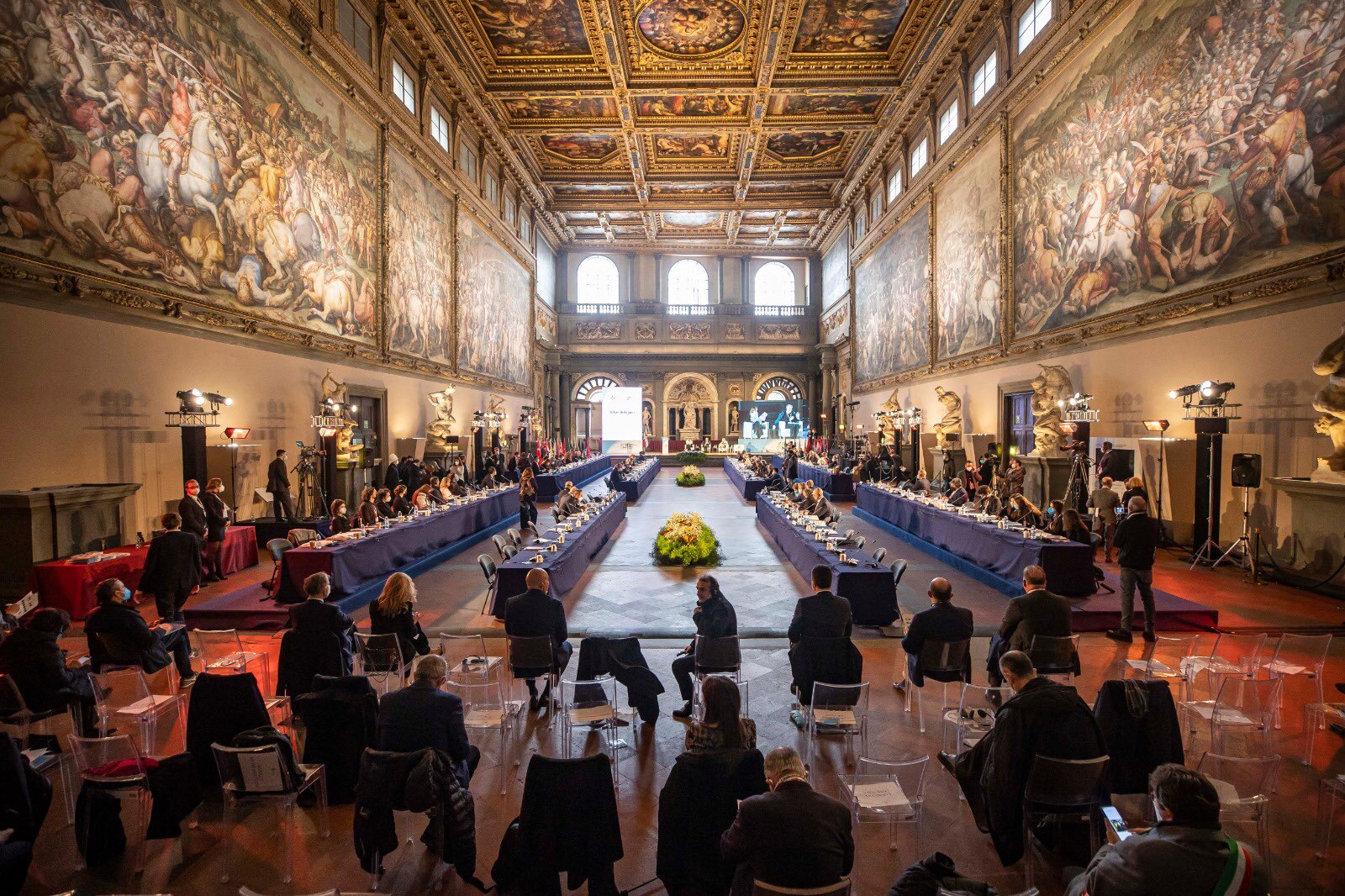 "Geçmişle uyum, geçmişi bilmeden bir gelecek inşa edemeyeceğimizi ifade etmektedir. Homeros’un dediği gibi “yeryüzünün üzerinde söylenmeyen hiçbir şey kalmadı”. Yani her şey önceden söylenmiş durumda. Yani bizler nelerin söylendiğini ve nelerin başarıldığını anlamalıyız. Bu sebeple bizler geçmişimizle uyum içinde olmalıyız. Birbirimizle uyum demokrasi demektir. Birlikte yaşamanın sırrıdır. Bu sebeple, birlikte yaşamayı nasıl başaracağımızı ve demokrasinin değerini hatırlamamız gerekiyor. Doğayla uyum üçüncü ayaktır. Ne yazık ki sanki doğamız üzerinde ondan daha üstün gücümüz varmış gibi hissettik ve bu şekilde yaşadık. Ve çok kolay bir şekilde doğamızı yok ettik. Ve biz başka bir ekosistem yaratma çabasına girdik. Fakat ne yazık ki bu mümkün değil, çünkü bizler doğanın parçasıyız. Artık vakit bunu fark etme vaktidir ve yeniden doğayla uyumlu yaşama zamanıdır. Sonuncu ama son derece önemli olarak, değişimle uyum dördüncü ayaktır. Çünkü diğer türlü, bizler dogmalarla ve ideolojilerle yaşamaya devam ederiz. Fakat yeniliklere ve yaratıcı fikirlere yer açmalı ve fırsatlar yaratmalıyız. Eminim ki, bu kültürü toplumlarımıza ve insanlarımıza bir kaldıraç olarak kullanarak, dünyanın geri kalanına yeniden barışın mümkün olduğunuz gösterebileceğiz. Doğamızı korumanın mümkün olduğunu gösterebileceğiz. Ve birlikte barış içinde yaşamanın mümkün olduğunu gösterebileceğiz. Bu sebeple yeniden tüm organizatörlere ve Floransa Belediye Başkanına teşekkür etmek istiyorum ve umuyorum ki Floransa’dan tüm dünyaya barışın mümkün olduğu mesajını verebiliriz."