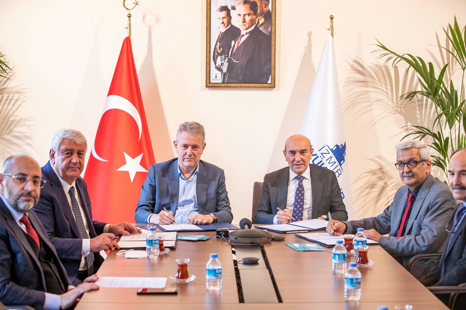 Egemenlik Evi Başkanlık Ofisi’ndeki imza törenine İzmir Büyükşehir Belediye Başkanı Tunç Soyer, İzmir Ticaret Odası (İZTO) Başkanı Mahmut Özgener, İzmir Esnaf ve Sanatkârlar Odaları Birliği (İESOB) Başkanı Zekeriya Mutlu, İzmir Kitap ve Kırtasiyeciler Esnaf Odası Başkanı Hulusi Demir, İzmir Kitap ve Kırtasiyeciler Esnaf Odası Başkanvekili Hasan Ermiş ile İzmir Büyükşehir Belediyesi Genel Sekreteri Dr. Buğra Gökçe ve İzmir Büyükşehir Belediyesi Genel Sekreter Yardımcısı Ertuğrul Tugay katıldı.