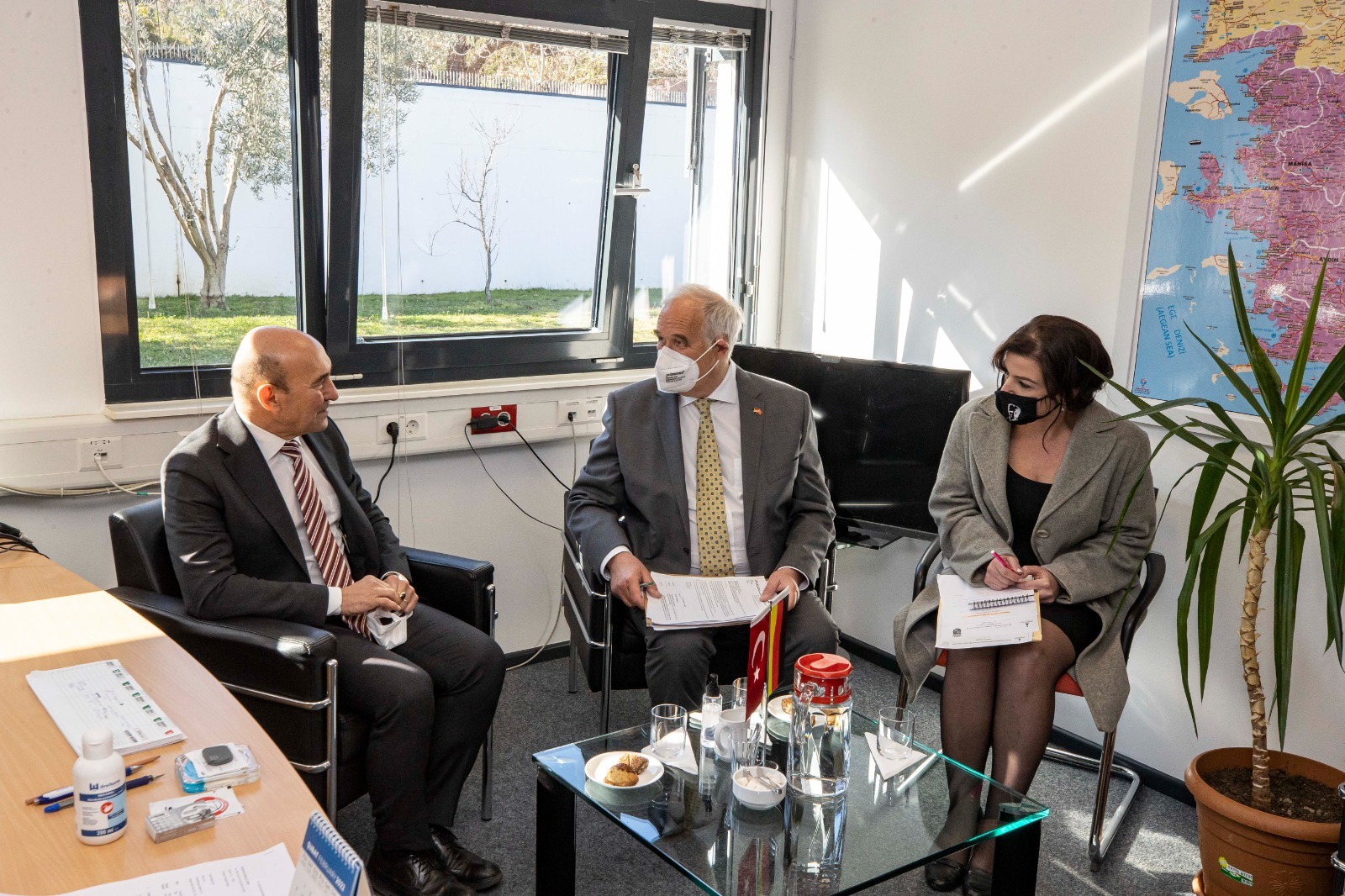Almanya’nın İzmir Başkonsolosu Detlev Wolter ise Başkan Soyer’e ziyaretinden dolayı teşekkür etti. Detlev Wolter, “Bize güvendiğiniz için çok teşekkür ediyorum. Biz de İzmir ve Almanya kentleri arasında işbirliğinin güçlendirilmesi için çalışacağız” dedi.
