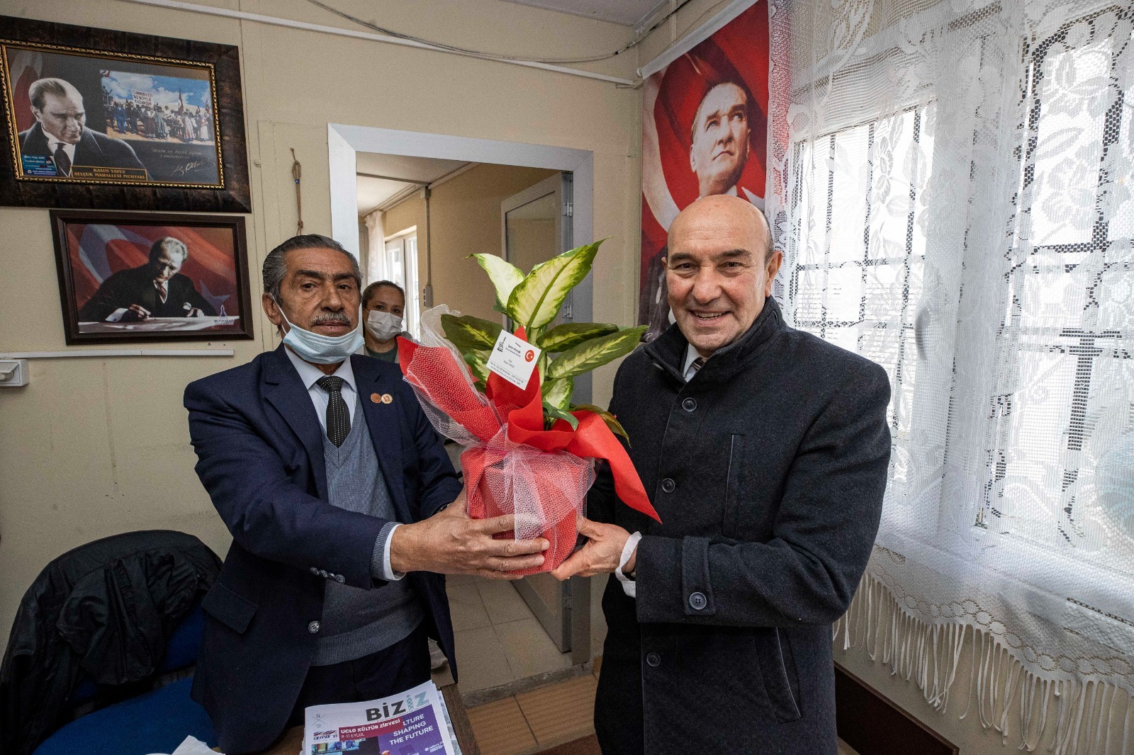 İzmir Büyükşehir Belediye Başkanı Tunç Soyer kentin sorunlarının yerinde tespit ederek çözüm üretilmesini sağlamak amacıyla muhtar ziyaretlerine devam ediyor. Konak’a bağlı Selçuk Mahalle Muhtarı Kasım Yavuz’u ziyaret eden Başkan Soyer, başta Cicipark’takiler olmak üzere mahallede İzmir Büyükşehir Belediyesi tarafından yapılan uygulamaları yerinde inceledi. Kıbrıs Gazisi unvanını taşıyan ve 20 yıldır mahalle muhtarlığı yapan Kasım Yavuz, Başkan Soyer’e mahalleye verdiği destekten dolayı teşekkür etti.