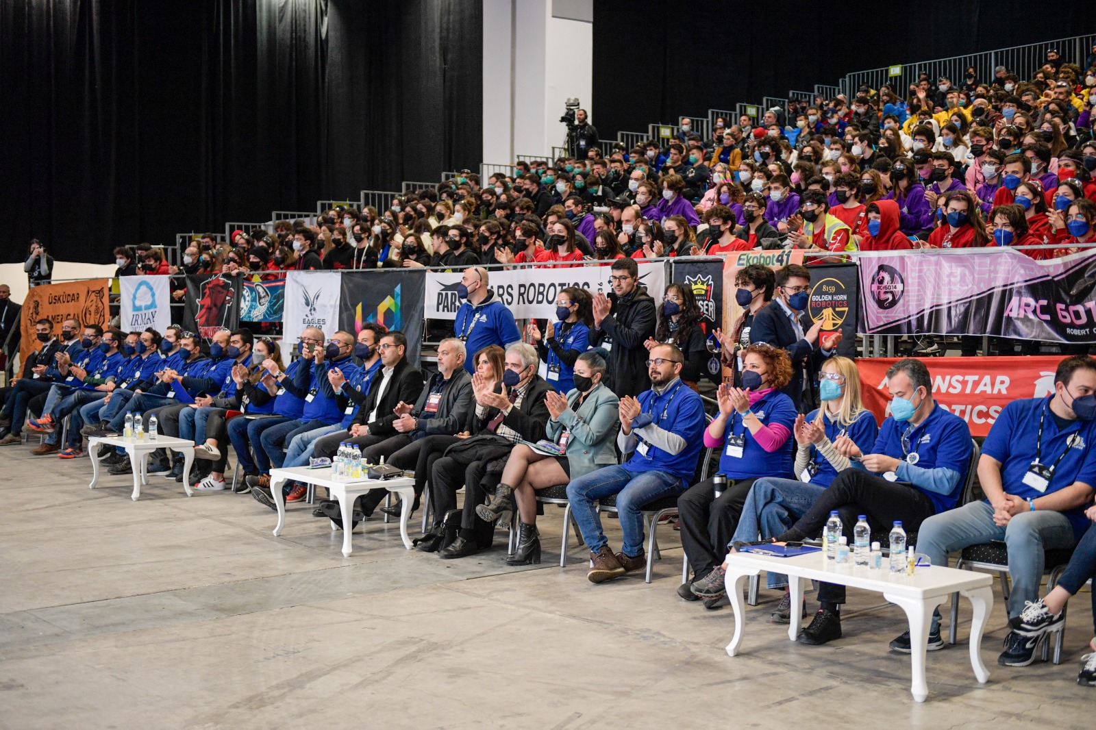 2022 yılının Avrupa’da ilk etkinliği olan İzmir Bölgesel Yarışları’na ilgi büyük oldu. Pandeminin hafiflemesiyle birlikte yüz yüze bir turnuva geçirecek olmanın heyecanını yaşayan öğrenciler, sabahın erken saatlerinde açılış töreni için yerlerini aldı. Açılış konuşmalarından önce gençlere Amerika’nın Hollywood ve Seattle şehirlerinden gençlere iki önemli mesaj geldi. İlk mesaj dünyanın en büyük medya şirketi Walt Disney Company’nin Hollywood’daki Universal Stüdyolarından ulaştırıldı. Dünyaca ünlü Star Wars (Yıldız Savaşları) filminde Anakin Skywalker (Darth Vader) karakteri ile bilinen Hayden Christensen ile filmin oyuncularından Ming-Na Wen ve Kelly Marie Tran, FRC 2022 sezonu için gençlere seslenerek şunları söyledi: “Bilimin, teknolojinin, mühendisliğin ve matematiğin gücü sayesinde günümüz öğrencileri bu zorluklarla karşılaşabilir ve hem kendilerini hem de toplumlarını hayal edebilecekleri gelecekleri yaratabilirler. Bu nedenle biz de Star Wars tarafından desteklenen ‘değişim için güç’ kampanyamızla gençleri destekliyoruz. Geleceği inşa etmek için takımların bilgi birikimi ve yaratıcılıklarını nasıl kullanabileceklerini göstermekten heyecan duyuyoruz. Umut ve inovasyon hikayelerinizi duymak için sabırsızlanıyoruz.”