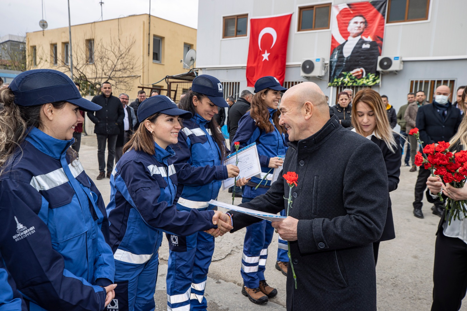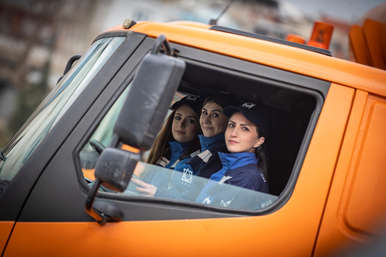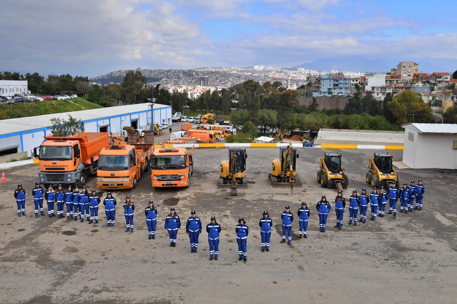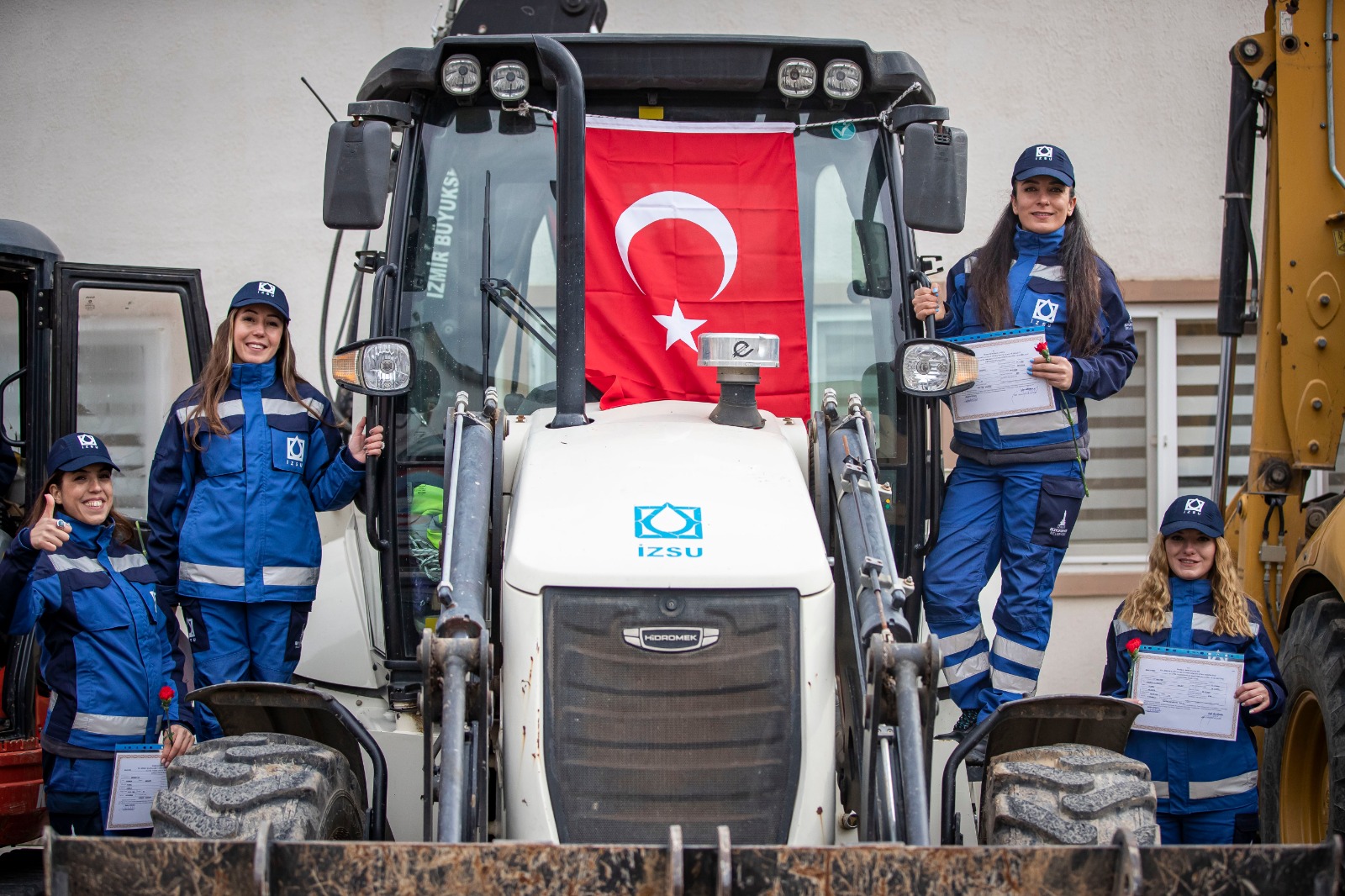 İzmir Büyükşehir Belediye Başkanı Tunç Soyer’in toplumsal cinsiyet eşitliği vizyonu kapsamında iş makinası operatörü ve ağır vasıta şoförü 30 kadın 8 Mart Dünya Kadınlar Günü öncesinde İZSU Genel Müdürlüğü bünyesinde işbaşı yaptı. İzmir Büyükşehir Belediyesi Meslek Fabrikası’ndaki eğitim sürecini başarıyla geçen personele sertifikalarını veren Başkan Soyer gurur duyduğunu ifade ederek, “Artık İzmir’in altyapısında kadın eli, kadın emeği daha fazla olacak” dedi. Yeni kadın personel ise önyargıları kırmaya hazır.