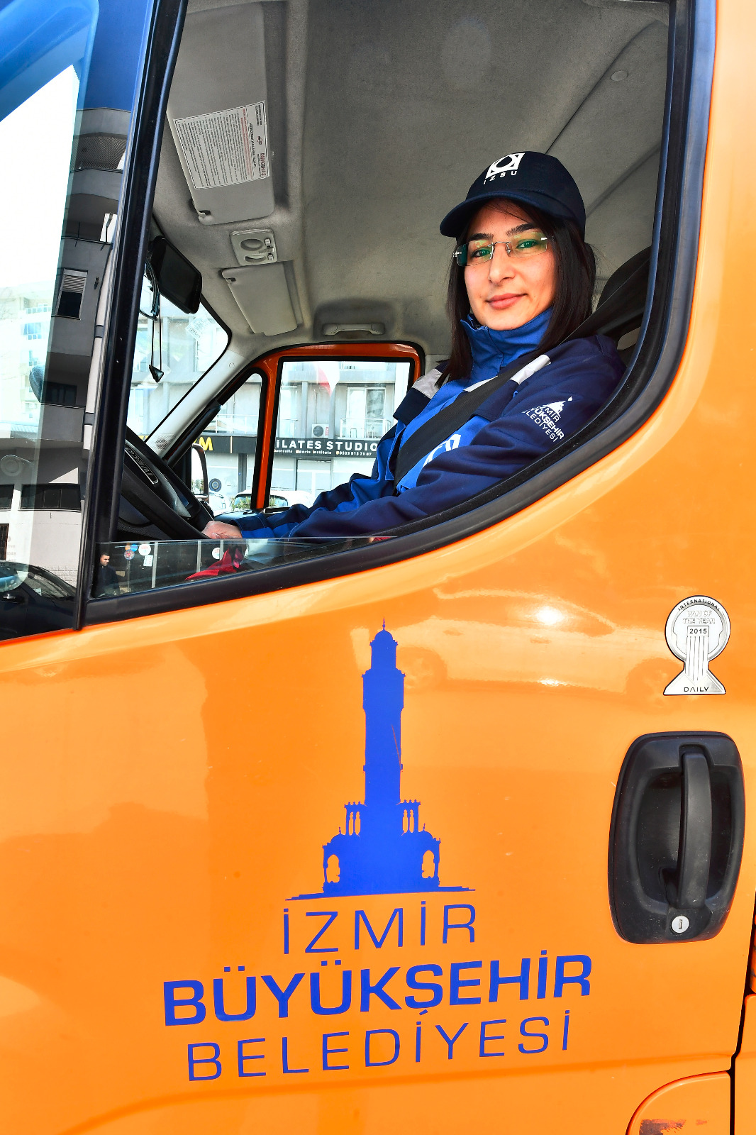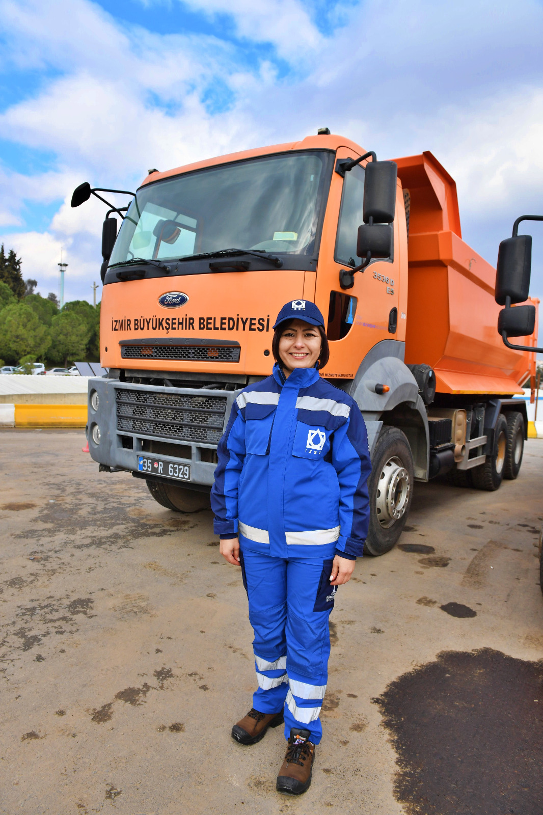 “Hayalimi yaşıyorum şu an ben hep ağır vasıta araçlarını kullanmak istemiştim. Babam hafriyat şoförüydü ve kamyon kullanacağımı söylediğimde bana ‘Koca koca adamlar zor zapt ediyor bu kamyonları sen nasıl kullanacaksın?’ dedi. ‘Ben yapacağım’ dedim ve şu an ailemin gururu oldum. Evet topuklu ayakkabılarımla ve ojeli tırnaklarımla bu işi yapacağım toplumdaki bu önyargıyı kıracağım. Biz kadınları bu sektörde gördükleri için çalışma arkadaşlarım da çok sevindi ve bu karşılama beni daha çok motive etti. Kadının baş edemeyeceği bir iş yok. Asıl kadına bu fırsatı vermeyenler kadınları zayıf düşürüyor. Bu yüzden İzmir Büyükşehir Belediye Başkanı Tunç Soyer’e bize sunduğu bu destekten ötürü çok teşekkür ederim.”