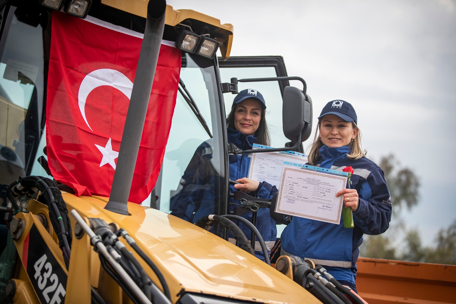 İZSU Genel Müdürlüğü ve İzmir Büyükşehir Belediyesi Meslek Fabrikası’nın iş birliğiyle düzenlenen program kapsamında 30 kadın aday eğitime tabi tutuldu. Milli Eğitim Bakanlığı’nın düzenlediği sınavın ardından C sınıfı sürücü ehliyetlerini almaya hak kazananlar İZSU Genel Müdürlüğü’nde iş makinası operatörü ve ağır vasıta şoförü olarak işbaşı yaptı.