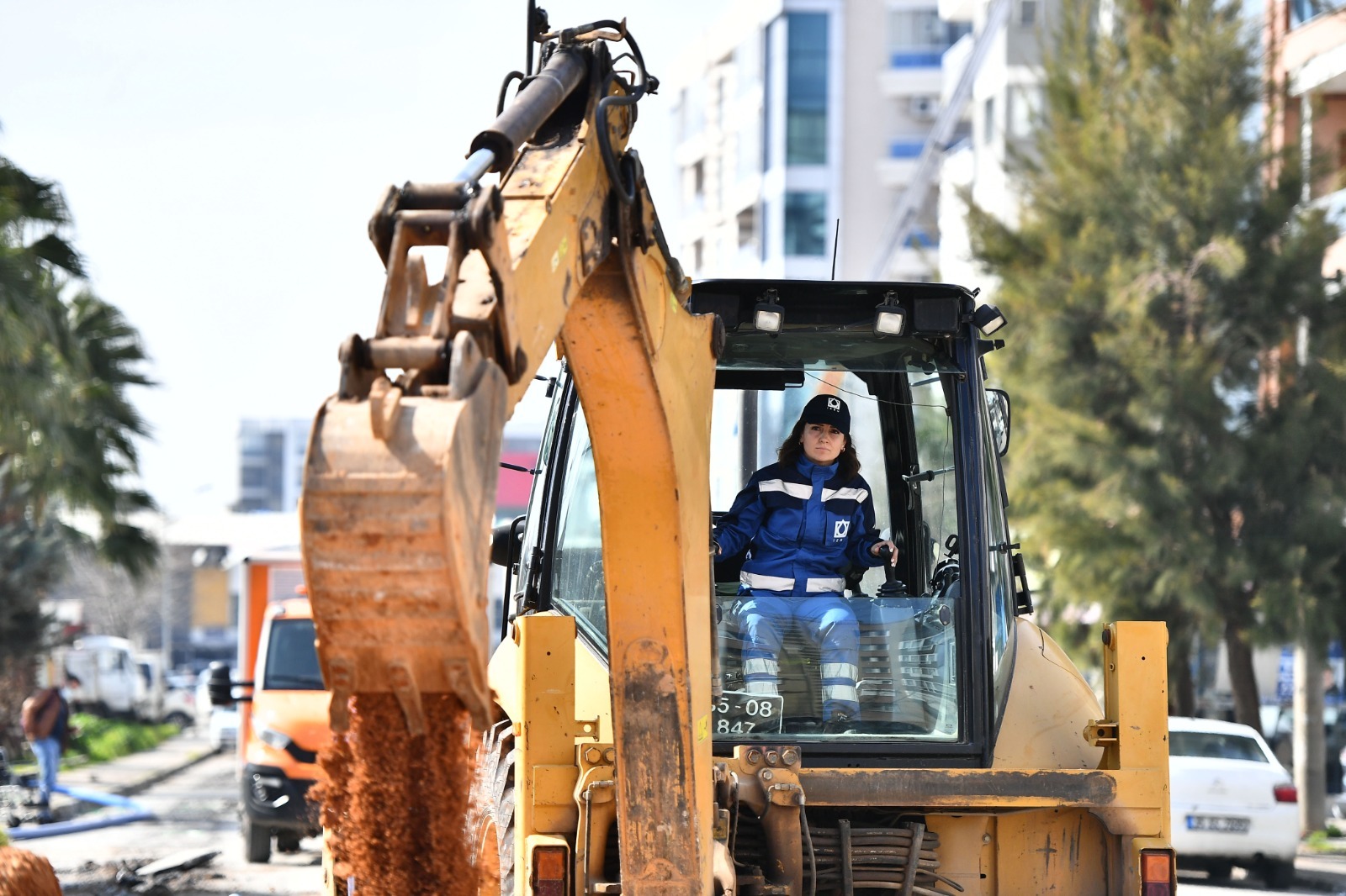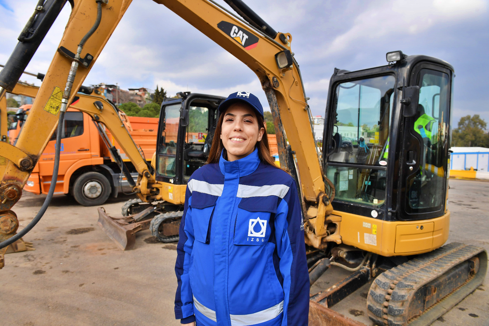 Daha önce ofis personeli olarak hep masa başı işlere çalıştığını ifade eden iş makinası operatörü Yağmur Güngör, “Güçlü kadınlar, güçlü yarınlar demek ve bu yüzden buradayım. İlk makinayı kullandığımda tedirgin olmadım değil ama şu anda emin bir şekilde görevimi hakkıyla yerine getiriyorum. Sahada çalıştığımız için bu üniformayla dışarıya çıktığımızda vatandaşlar, kadın İZSU personeline alışık değil. Ama ben biliyorum ki üstesinden gelemeyeceğimiz bir iş yok” şeklinde konuştu.