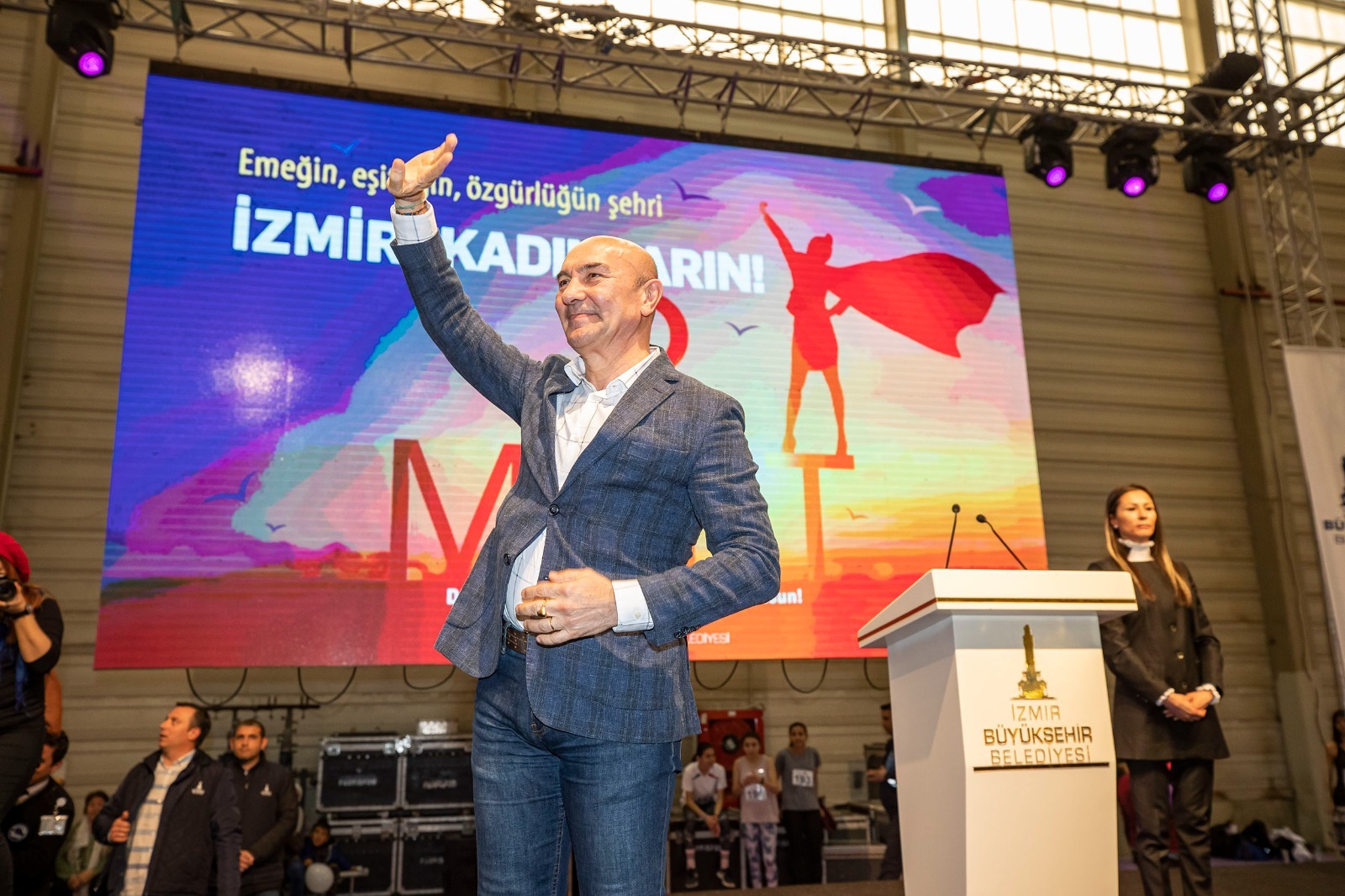 Başkan Soyer, İzmir Büyükşehir Belediyesi’nin karar alma mekanizmalarında eşit temsilin uygulandığını dile getirerek “Biz yönetim ve istihdam politikasında cinsiyet eşitliği ilkesini esas alıyoruz. Belediyemiz ülkemizde en fazla kadın yöneticinin olduğu kurumların başında geliyor. Büyükşehir Belediyesi’nde kadınlar karar alma mekanizmalarında güçlü bir şekilde varlığını hissettiriyor. Kadın ve erkek yönetici oranlarımız neredeyse yarı yarıya” diye konuştu. Erkek egemen iş kollarında kadın istihdamını önemsediklerini vurgulayan Soyer, sözlerini şöyle sürdürdü: “Bu hedefle gemi kaptanı, Eshot şoförü, metro ve tramvay vatmanı, zabıta memuru, itfaiye memuru, vinç operatörü, güverte personeli iş kollarında kadın istihdamını sürekli arttırıyoruz. İZSU’da daha yeni iş makinası operatörü ve ağır vasıta şoförü 30 kadın işbaşı yaptı. Son üç yılda İzmir Büyükşehir Belediyesi’nde kadın çalışan oranının yüzde 40 artış gösterdiğini de söylemeliyim.” Başkan Soyer, sadece İzmir Büyükşehir Belediyesi’nde değil İzmir’de de kadın erkek eşitliğini hayatın her alanında sağlamak için pek çok somut proje yürüttüklerini de ekleyerek sözlerini şöyle tamamladı: “Şiddetin olmadığı, eşit ve adil bir dünya için tüm kadınların umudunu İzmir’den yeşerteceğiz”