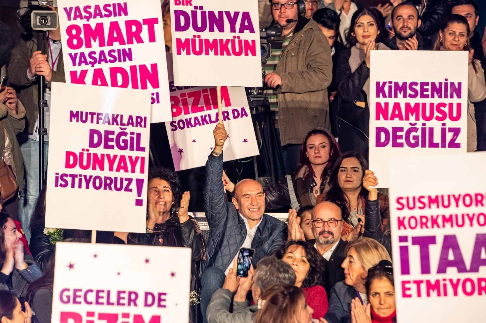 - İzmir Büyükşehir Belediye Başkanı Tunç Soyer, bu yıl savaşın gölgesinde kutlanacak 8 Mart Dünya Kadınlar Günü mesajında İstanbul Sözleşmesi’ne acilen geri dönme çağrısında bulundu. Soyer, “İzmir’de kadın erkek eşitliğini hayatın her alanında sağlamak için de pek çok somut proje yürütüyoruz. Şiddetin olmadığı, eşit ve adil bir dünya için tüm kadınların umudunu İzmir’den yeşerteceğiz” dedi.