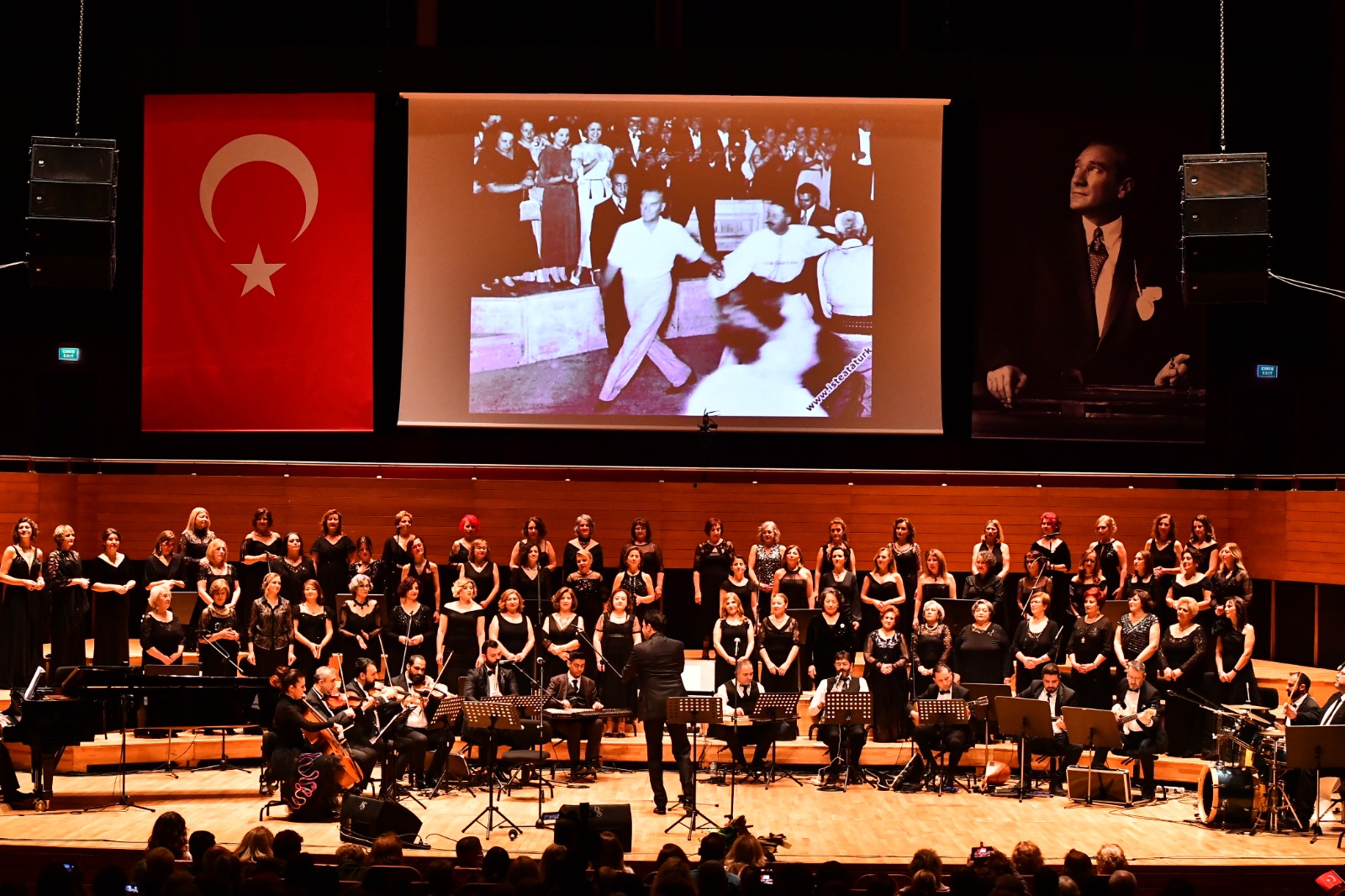İzmir Büyükşehir Belediye Başkanı Tunç Soyer’in “kadın dostu kent” vizyonu doğrultusunda 8 Mart Dünya Kadınlar Günü için düzenlenen altı günlük etkinlikler devam ediyor. Program kapsamında Ahmed Adnan Saygun Sanat Merkezi’nde (AASSM) dün akşam “Cumhuriyet’in Kadınları İzmir’de Söylüyor! Dünya Dinliyor” korosu konser verdi. İzmir Büyükşehir Belediyesi, İzmir Tülay Aktaş Gönüllü Kuruluşlar Güçbirliği ve Belçika Türk Kadınlar Derneği işbirliği ile Mustafa Kemal Atatürk’ün Türk kadınına seçme ve seçilme hakkı tanımasının 88. yılına ithafen 88 amatör kadın sesi sanatseverlerle buluştu. Atatürk'ün sevdiği şarkılar, kadınca şarkılar, türküler, tangolar, valsler ve marşların seslendirildiği konserin sanat yönetmenliğini Ümit Bulut üstlendi. Sanatseverler koronun şarkılarına alkışlarla eşlik etti. Keyifli gece Aydın Bir Türk Kadınıyım ve İzmir Marşı ile son buldu. Salondaki dinleyiciler marşlar sırasında Türk Bayrakları ile coşkuya ortak oldu.
