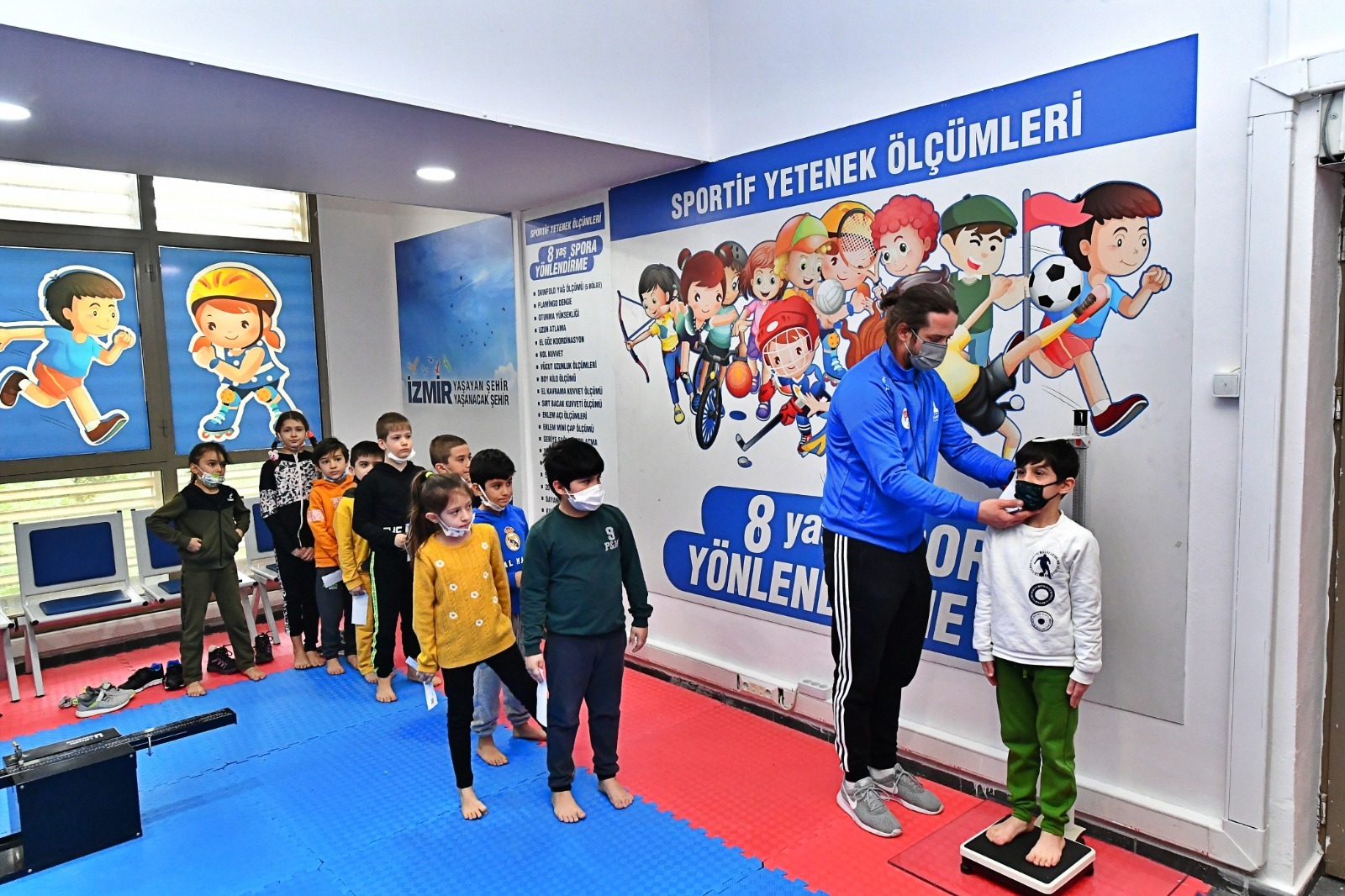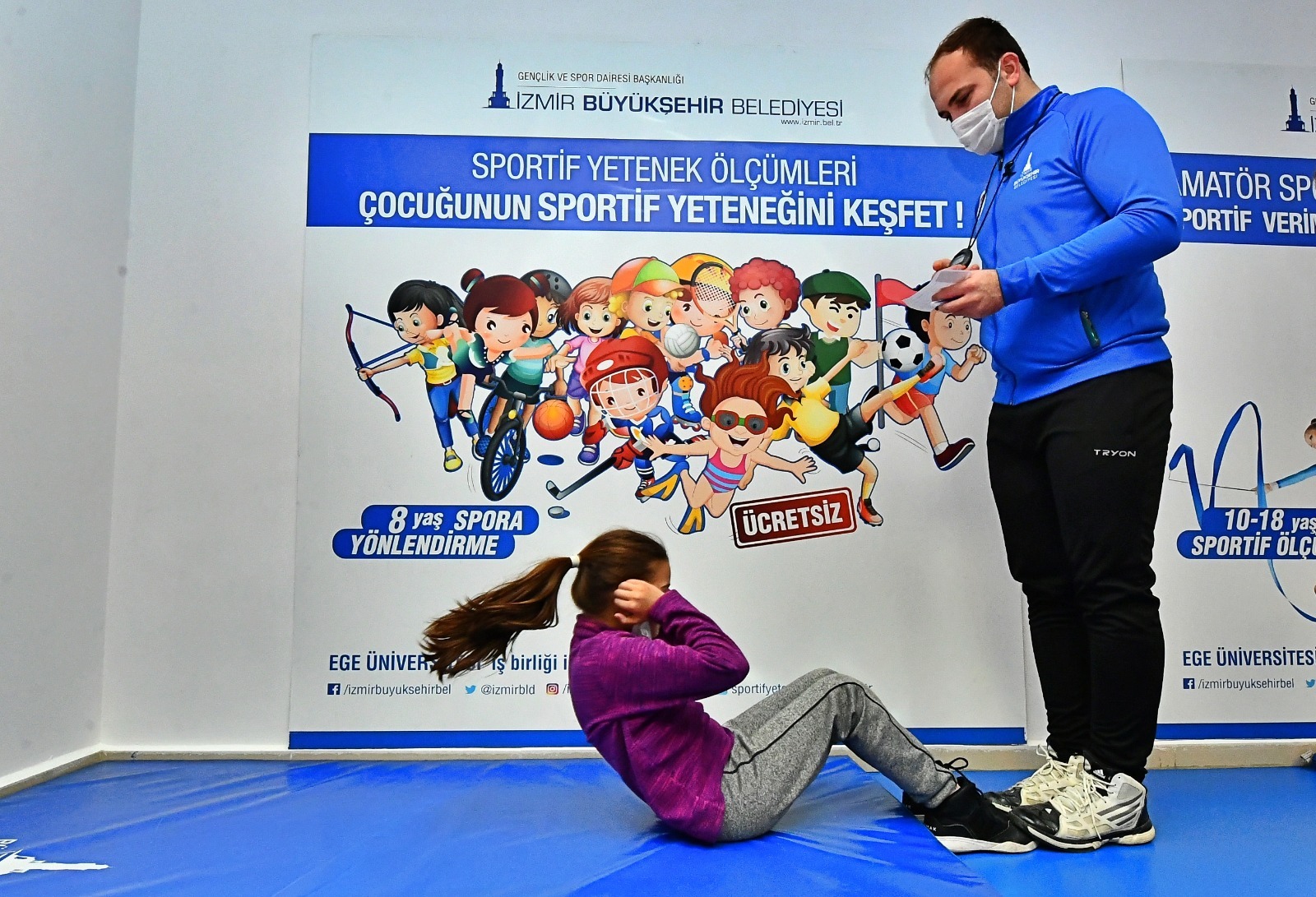 Program kapsamında Bornova Aşık Veysel Rekreasyon Alanı içerisindeki Buz Sporları Salonu’na aileleriyle gelen çocuklar, uzman eğitmenler eşliğinde yetenek ölçüm uygulamasına katılıyor. Ege Üniversitesi işbirliğiyle yapılan ve bir buçuk saat süren ücretsiz testlerde çocukların ilk önce yağ ölçümü yapılıyor, ardından denge ve esneklik kontrol ediliyor. Uzun atlama, el göz koordinasyonu, kol kuvveti, mekik, 5 metre çeviklik, 20 metre sürat, dikey sıçrama gibi testlere tabi tutulan çocukların hangi branşlarda yetenekli olduğuna dair veriler yüzdelik olarak hesaplanıyor ve rapor olarak velilere sunuluyor. Böylece aileler deneme-yanılma yöntemi yerine çocuklarının yetenek ve eğilimlerini değerlendirme fırsatı buluyor.