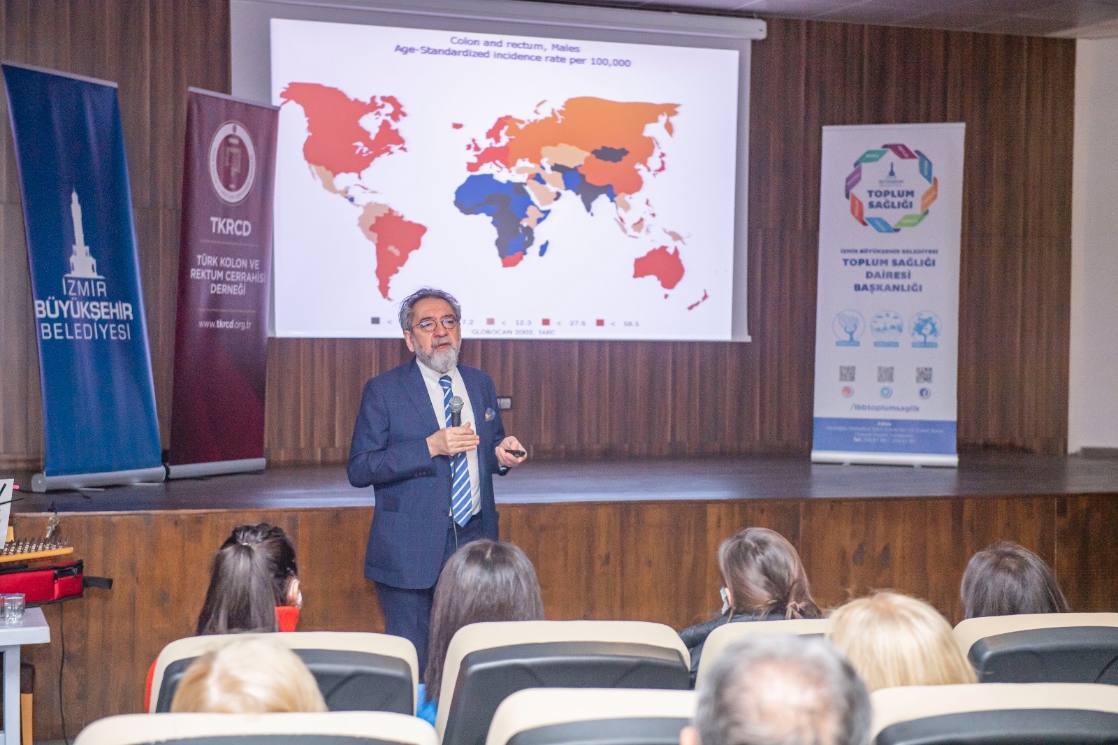 İzmir Büyükşehir Belediyesi Toplum Sağlığı Dairesi Başkanlığı Türk Kolon ve Rektum Cerrahisi Derneği kolon kanseri farkındalık ayı etkinlikleri kapsamında seminer düzenledi. Seminerde konuşan Türk Kolon ve Rektum Cerrahisi Derneği Yönetim Kurulu Üyesi Prof. Dr. Cem Terzi, kanser vakalarının obezite ve diyabetle doğru orantıda arttığını söyleyerek, “50 yaşını dolduran herkes kolonoskopi olmalı” dedi.