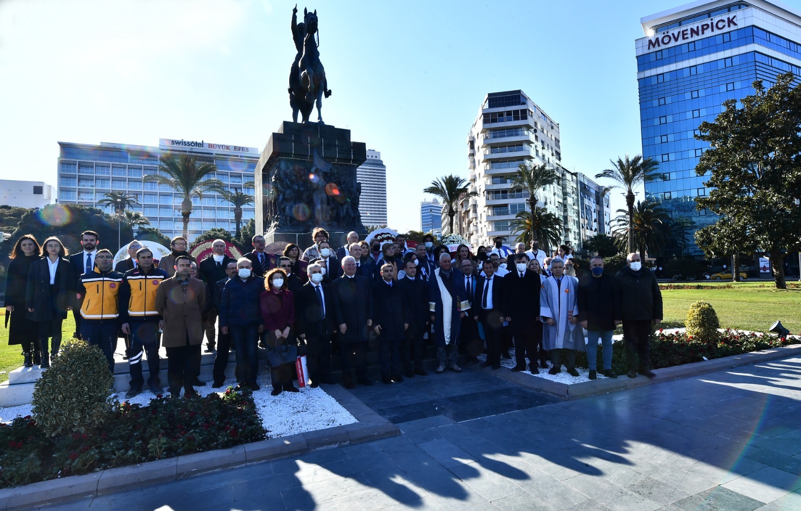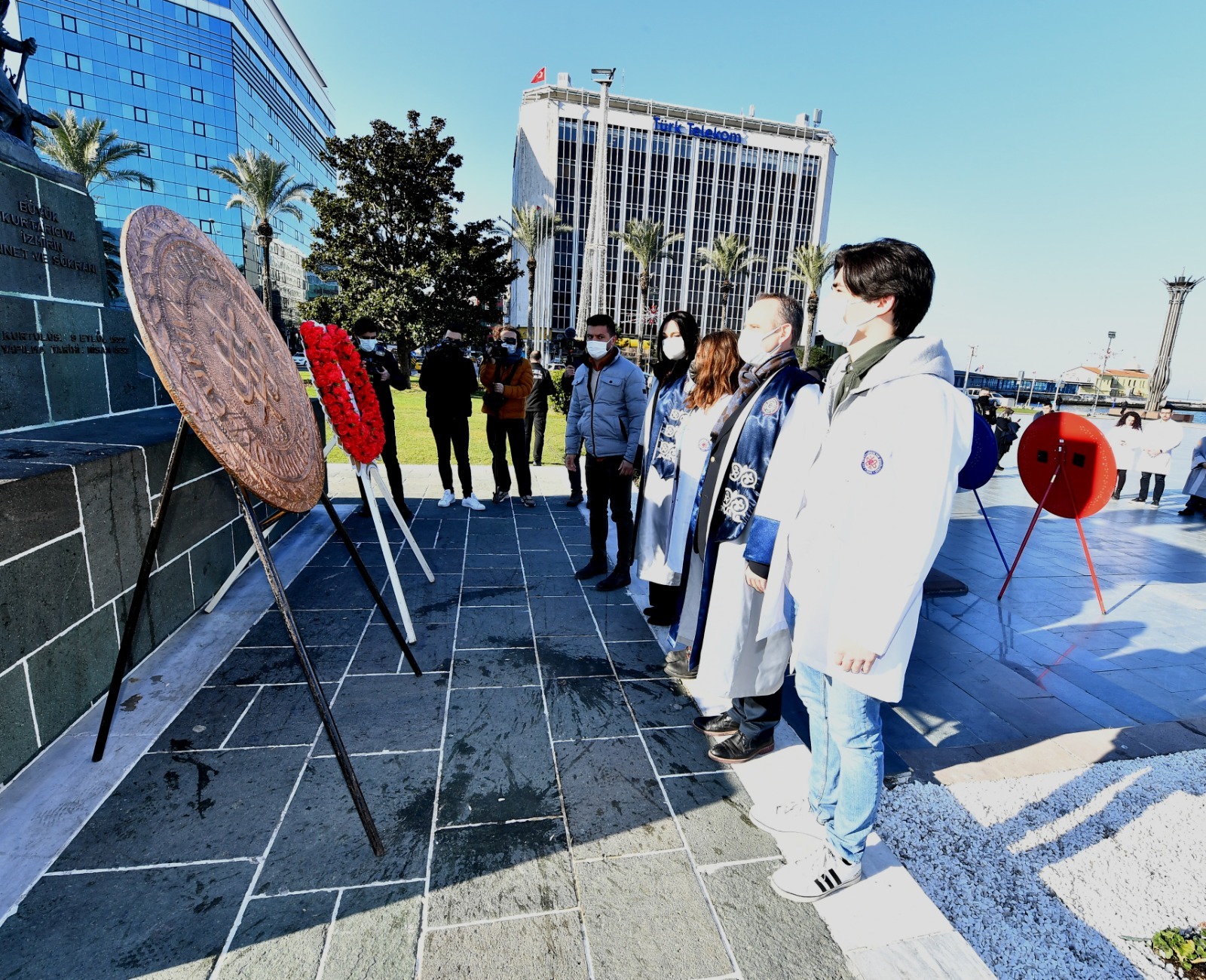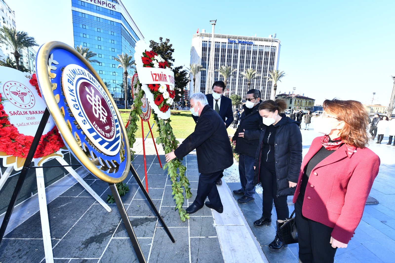 İzmir'de 14 Mart Tıp Bayramı Cumhuriyet Meydanı'ndaki anıta çelenk koyma töreniyle başladı. Törene İzmir Vali Yardımcısı Fatih Kızıltoprak, İzmir Büyükşehir Belediyesi Başkan Vekili Mustafa Özuslu, İzmir İl Sağlık Müdür Vekili Hüseyin Bozdemir, İzmir Tabip Odası Başkanı Lütfi Çamlı, İzmir’deki üniversitelerin rektörleri ve sağlık çalışanları katıldı. Saygı duruşu ve İstiklal Marşı’nın ardından anıta çelenk bırakıldı.