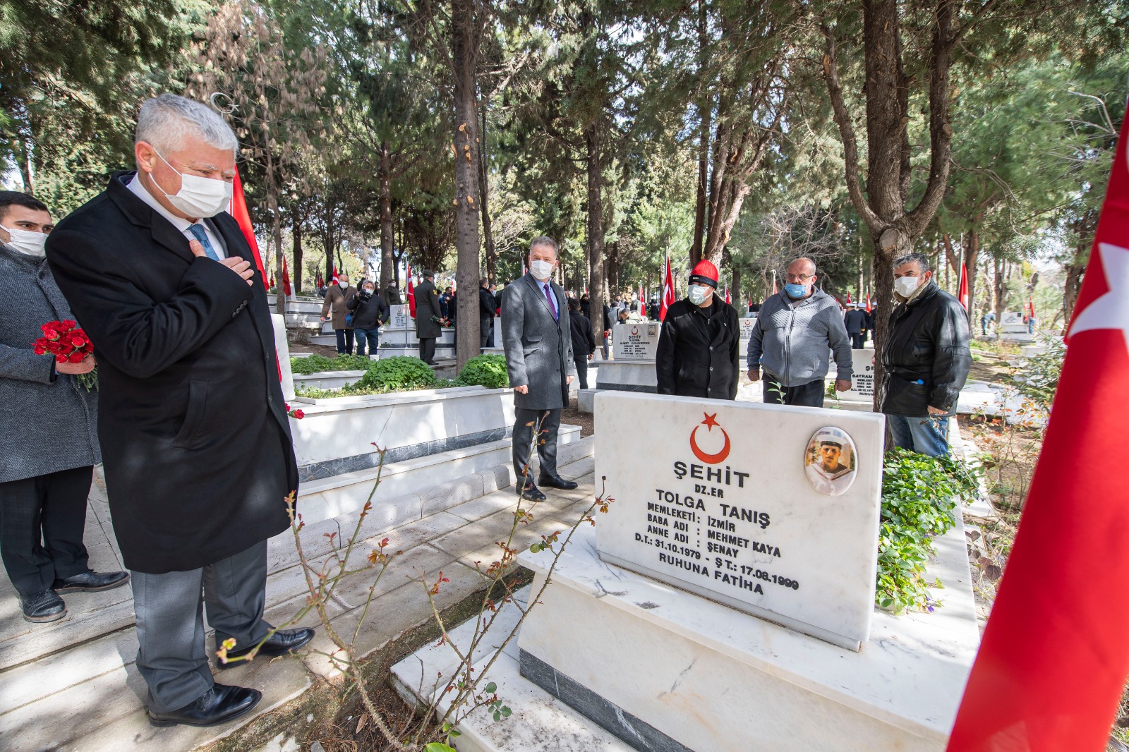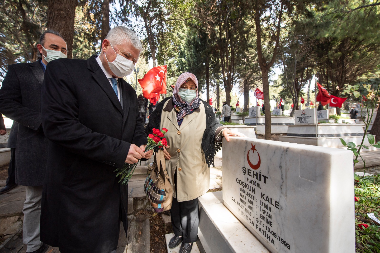 Törende şehitler için dua okunmasının ardından Kadifekale Şehitliği'ndeki kabirlere karanfil bırakıldı.