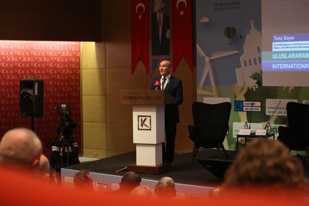 İzmir Büyükşehir Belediye Başkanı, ICLEI Küresel Yönetim Komitesi İklim Eylemi Eş Başkanı ve Sosyal Demokrat Belediyeler Derneği (SODEM) Başkanı Tunç Soyer, Kadıköy Belediyesi ve ICLEI Sürdürülebilir Kentler Birliği tarafından düzenlenen Kadıköy Sürdürülebilir Kentler Zirvesi’ne katıldı. Kadıköy Kozyatağı Kültür Merkezi'nde yapılan zirvede yeşil şehir yatırım finansmanı, iklim kriziyle mücadelede döngüsel kültürün rolü ve uluslararası girişimlerin yerelleştirilmesi konuları ele alındı. Açılış konuşması yapan Başkan Tunç Soyer, zirveye katılan tüm il ve ilçe belediyelerini ortak çabayla büyüyen ve 2019'dan bu yana Türkiye'deki üye sayısı iki katına çıkan ICLEI ağına katılmaya davet etti. Soyer, “ICLEI Kadıköy bildirgesinde belirtildiği gibi, hiçbir şehir, belediye başkanı veya ülke, küresel zorluklarla tek başına mücadele edemez. Bugün burada 70'in üzerinde belediyenin, uluslararası kuruluşların ve kentlerin temsilcisi olarak buluşmamız, iklim kriziyle mücadeledeki kararlılığımızın yegâne göstergesidir” dedi.