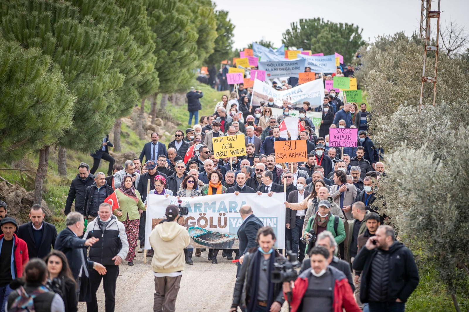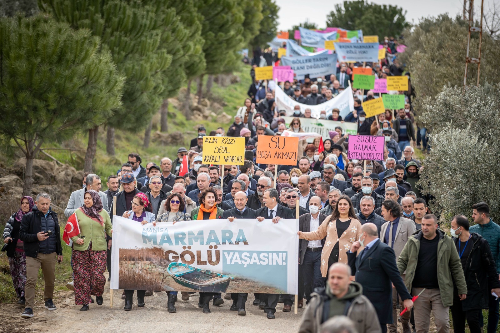 Ege Belediyeler Birliği ve İzmir Büyükşehir Belediye Başkanı Tunç Soyer’in öncülüğünde 22 Mart Dünya Su Günü’nde düzenlenen “Marmara Gölü Yaşasın” etkinliği Manisa Salihli’deki Tekelioğlu Köyü’nde yapıldı. İZSU, Gölmarmara ve Çevresi Su Ürünleri Kooperatifi, Gediz Havzası Erozyonla Mücadele, Ağaçlandırma, Çevre ve Kalkınma (GEMA) Vakfı, Doğa Derneği, Ege Orman Vakfı ve Naturel Rotary Kulübü ortaklığıyla düzenlenen etkinlikte doğaseverler kurumak üzere olan Marmara Gölü’ne dikkat çekti.
