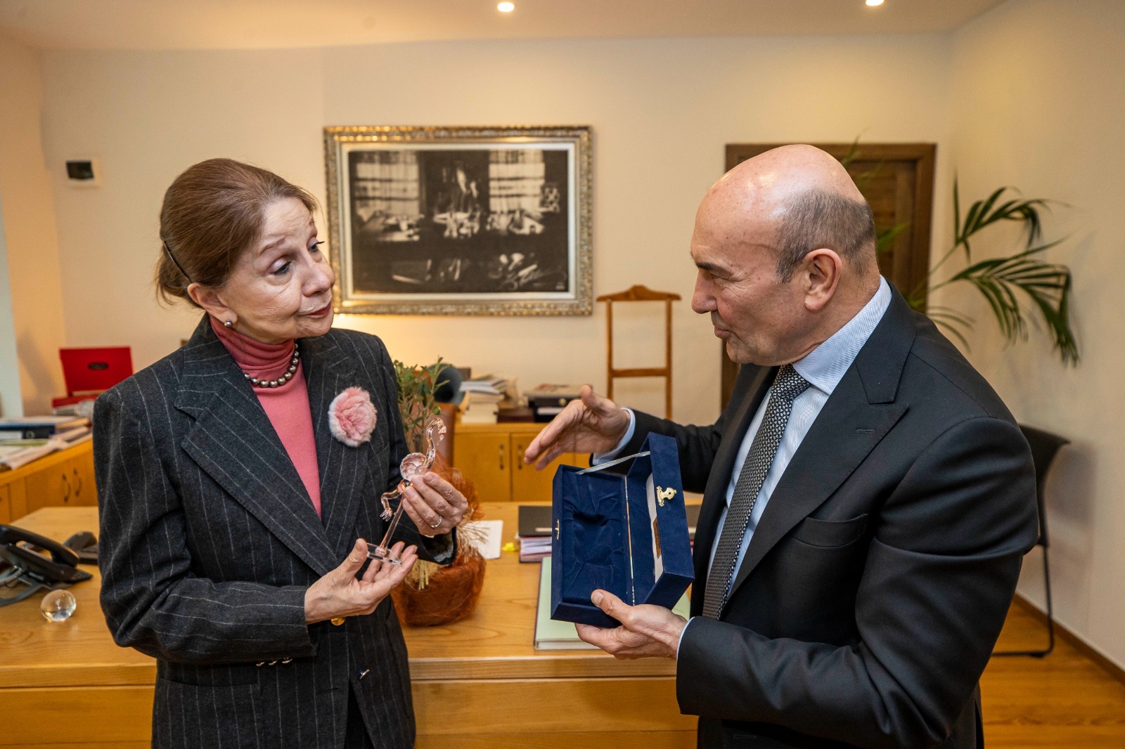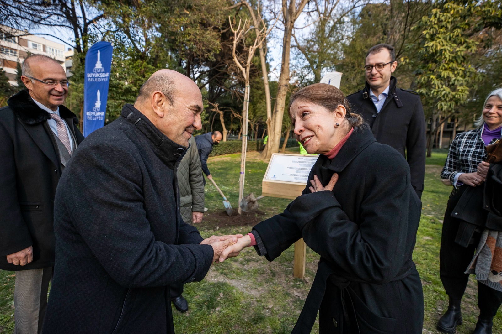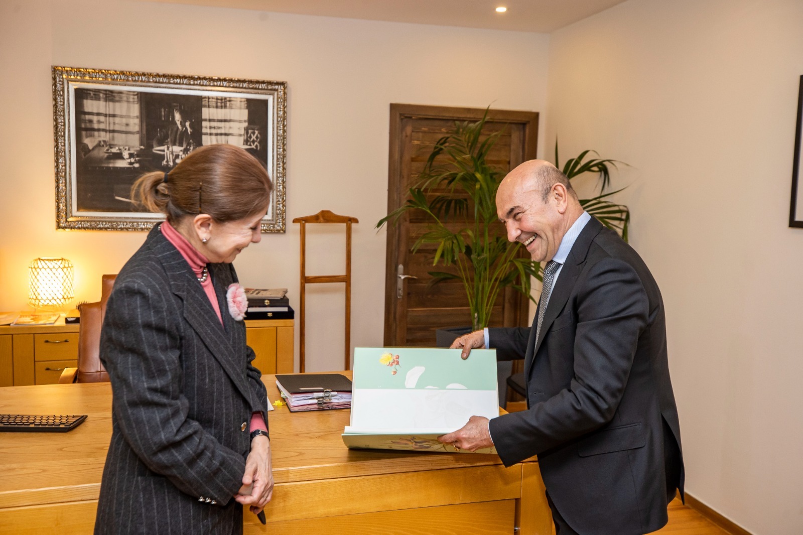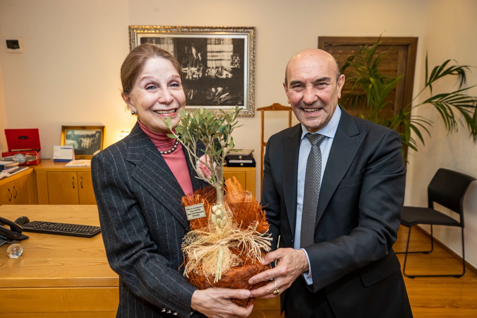Başkan Soyer ise Başkonsolos Cordeiro Dunlop’a zeytin fidanı hediye etti.