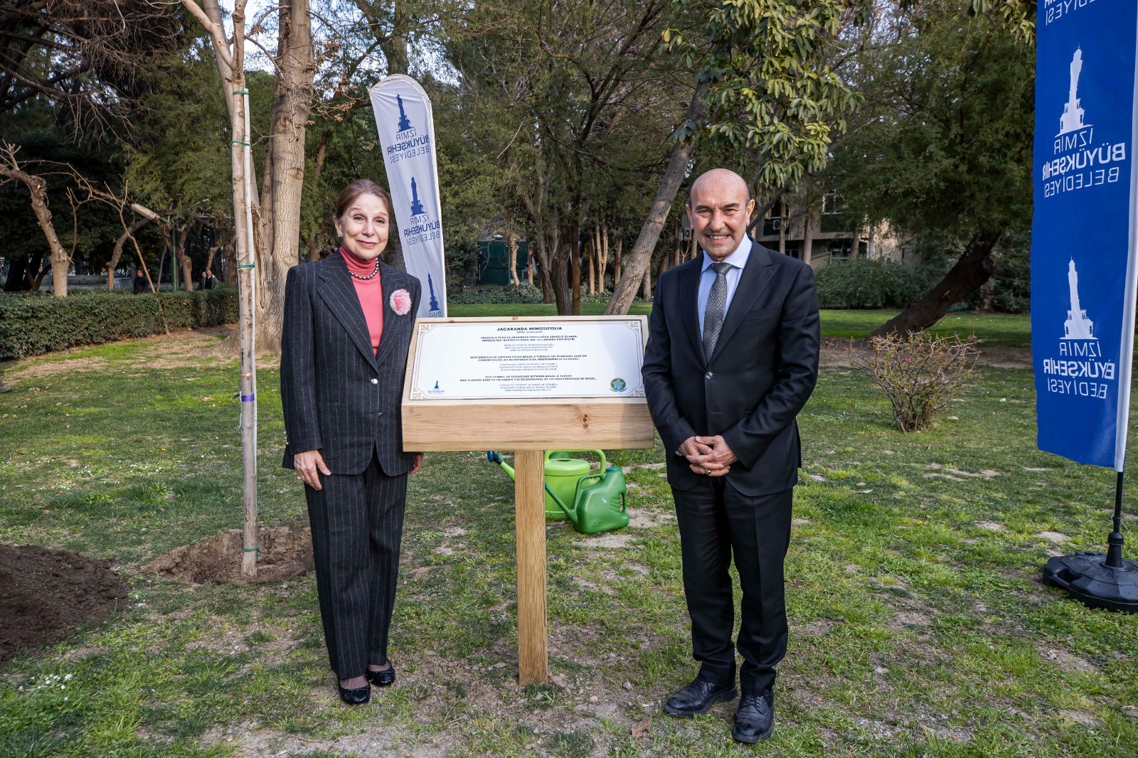 Brezilya İstanbul Başkonsolosu Regina Maria Cordeiro Dunlop ise, “İzmir’de olmaktan çok büyük mutluluk duyuyorum. Jacaranda ağacını Brezilya’nın 200’üncü yılı anısına armağan etmek istedik. Jacaranda, kokusuyla, görüntüsüyle bizler için çok değerli ve kıymetli bir ağaçtır. Biz ağaçtan bir çiçeğin başımıza düşmesinin çok büyük bir şans getirdiğine inanırız. Bu ağacın da İzmir’e şans getirmesini diliyorum” ifadelerini kullandı.