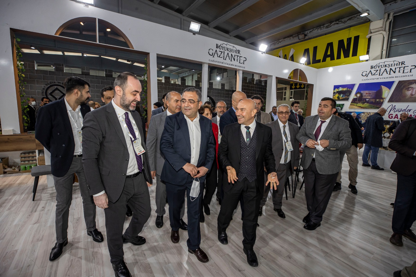 İzmir Büyükşehir Belediye Başkanı Tunç Soyer, Diyarbakır Valisi ve Diyarbakır Büyükşehir Belediyesi Başkan Vekili Münir Karaloğlu ve CHP İstanbul Milletvekili Sezgin Tanrıkulu ile İzmir Büyükşehir Belediyesi’nin standını ziyaret etti. Gastronominin artık sadece lezzetten ibaret bir başlık olmadığını söyleyen Başkan Tunç Soyer, “Gastronomi sağlıklı gıdayla, sürdürülebilir gıdayla ve tarımla, turizimle ilgili bir başlık. Bu nedenle içini çok fazla doldurmak gerekiyor. Gastronomi fuarlarının bu nedenle çok kıymetli olduğunu düşünüyorum” dedi.