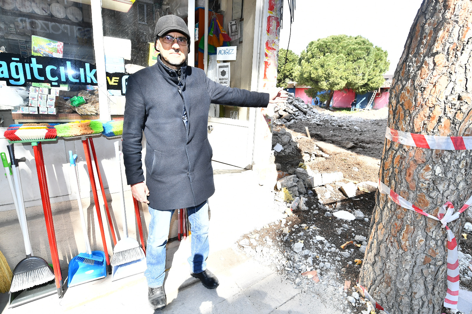 Yanındaki dükkanı yıkılarak molozları kapısının önüne kadar gelen esnaf Timuçin Cengiz, “30 yıldan beri bu işi yapıyorum. Yaşananlar her şey ortada. Hayatımda yaşamadığım şeyi şurada yaşıyorum. Bergama Belediyesi maalesef verdiği sözleri tutmadı. Yıkımlar başladı, üzülerek izliyoruz. İşimize büyük engel oluyor. Zorla çıkarılmaya teşebbüstür bu. İnsan haklarına aykırı. Verilen sözlerin hiçbiri yerine getirilmedi. Bizi zorluyorlar ama biz sonuna kadar direnmeye devam edeceğiz” diye konuştu.