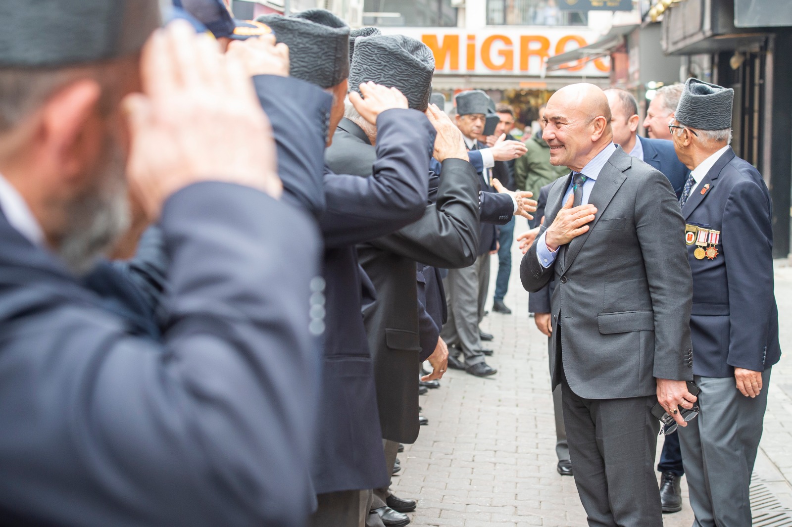Güne Muharip Gaziler Derneği İzmir Şubesi’ni ziyaret ederek başlayan Başkan Soyer, bütün dünyanın zor bir dönemden geçtiğini dile getirerek şöyle konuştu: “Savaşlar oluyor. İnsanlar vatanlarını terk ediyor. Böyle dönemlerde insan gazilerimizin kıymetini daha iyi anlıyor. Bu topraklarda kahramanlar yaşıyor. Sizler bu çabayı göstermeseydiniz bugün bambaşka yerlerde olabilirdik. Bu milletin harcı bu kültürdür. Bu kültürü yaşatan da sizlersiniz. Bu vatanı ayakta tutan şey vatan sevgisidir, millet aşkıdır. Onu da sizler yaşatıyorsunuz. Sizler bize emanetsiniz. Her zaman başımızın üstünde yeriniz var. Gücümüz neye yeterse yapmaya hazırız. Biz bir aileyiz. Sizlerin bizim gönlümüzdeki yeri bambaşka ve bu hep böyle olmaya devam edecek. Tek dileğimiz sizin yüzünüzün gülmesi.”
