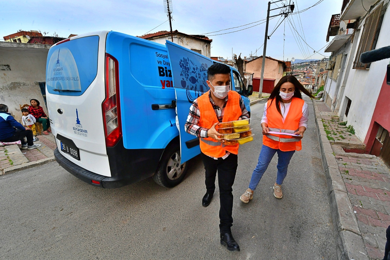İzmir Büyükşehir Belediyesi ekipleri ihtiyaç sahibi yurttaşlara iftar saatlerinde kapı kapı dolaşarak sıcak yemek dağıtımına başladı. Biz İzmir Dayanışma Noktaları, parklar, üniversite çevreleri ve metro istasyonlarında da iftar yemeği hizmeti devreye alındı. İzmirliler de Halkın Bakkalı üzerinden iftar paketi satın alarak dayanışmaya katılabiliyor. Satın alınan paketler İzmir Büyükşehir Belediyesi tarafından ihtiyaç sahiplerine ulaştırılıyor. Büyükşehir Belediyesi, Ramazan ayında toplam 600 bin kişilik iftar yemeği dağıtmayı hedefliyor.