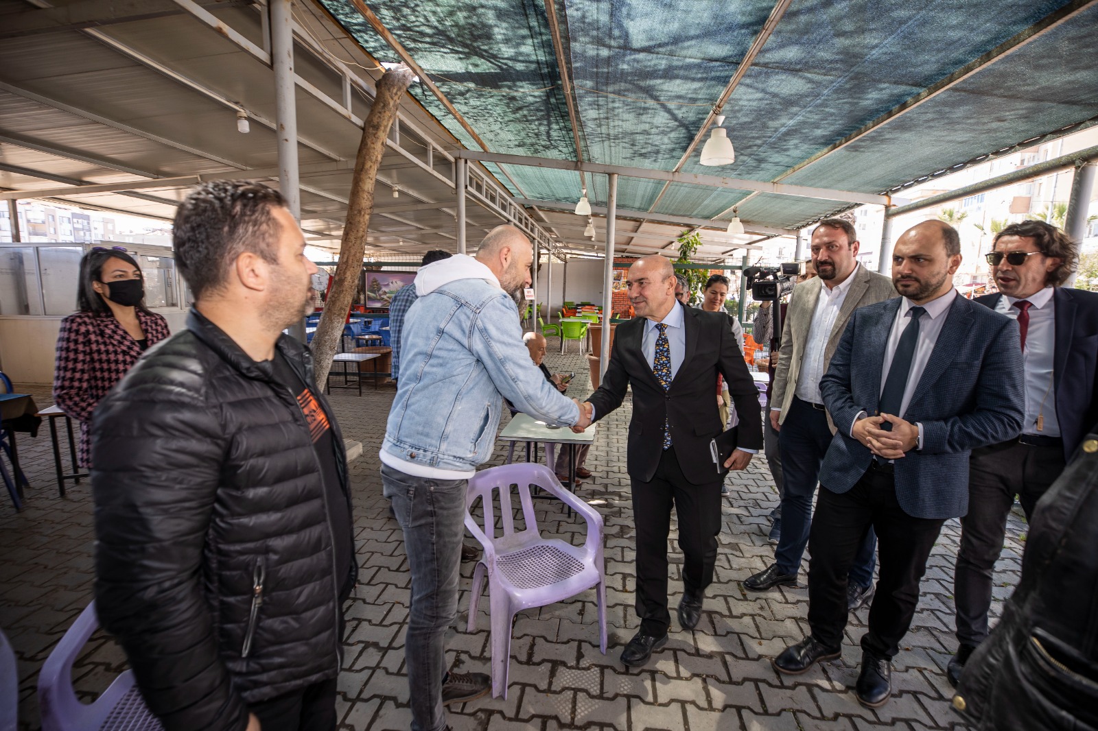 Başkan Soyer Bergama'da dükkanları yıkılan esnafı ziyaret etti
