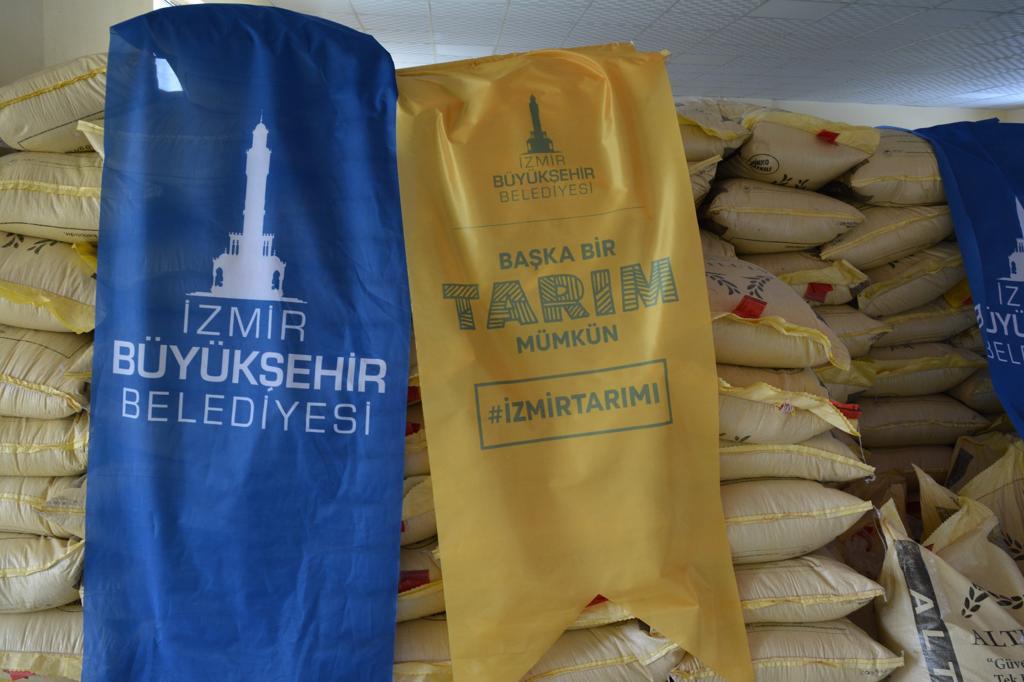 Oğuz Yantemur, Tohum Destek Projesi’ni Başkan Soyer’in çok önemsediğini dile getirerek, “Projenin koordinatörlüğünü kendisi üstlendi. Bugün burada görmüş olduğunuz tohumlar İzmir Büyükşehir Belediyesi tarafından Susuz’a gönderildi. Çiftçilere dağıtılmak üzere verildi. Burada 55 ton buğday 50 ton da arpa tohumu bulunuyor. Yine İzmir’in ilçe belediyelerinden de tohum almaya devam ediyoruz. Diğer belediyelerimizden de tohum yardımları gelmeye devam ediyor. Nisan ayının 15’inden sonra tohumları köylüye dağıtıp ekmelerini sağlayacağız” dedi.