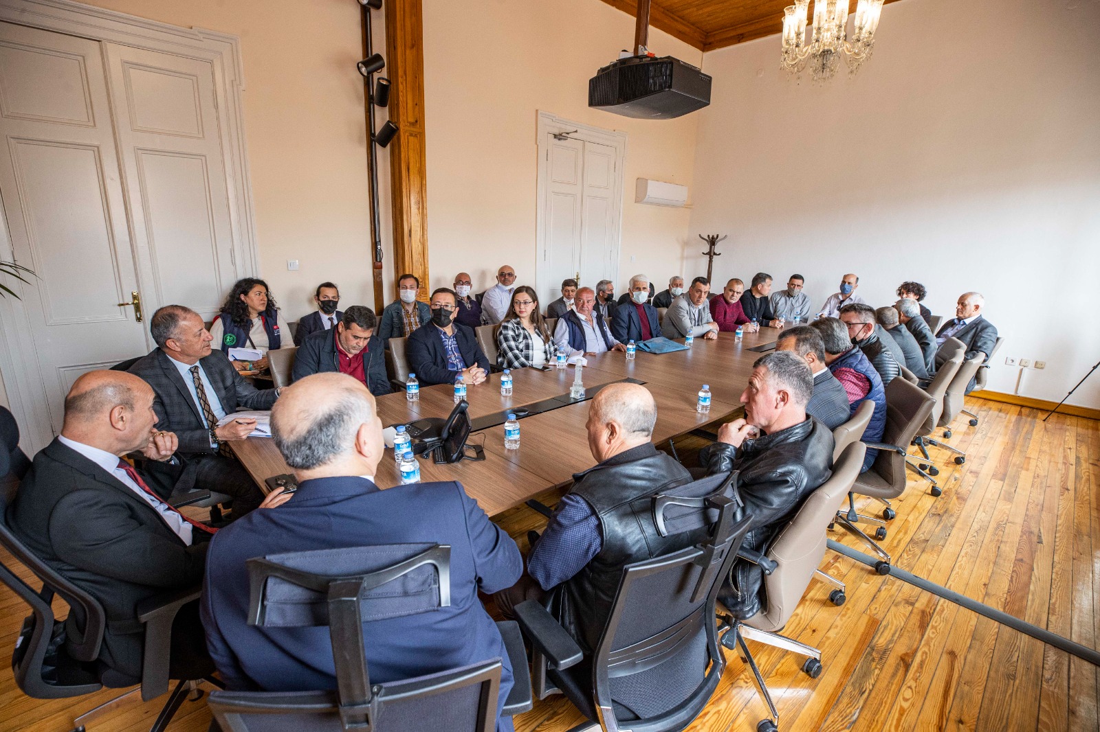 İzmir Büyükşehir Belediye Başkanı Tunç Soyer, İzmir Bölgesi Sulama Kooperatifleri Birliği Başkanı Hüseyin İlhan Yavuz önderliğinde sulama kooperatifleri başkanları ve İzmir Sulamaya Yönelik Yenilenebilir Enerji Üretim Kooperatifi (SULYEK) üyeleri ile bir araya geldi. Enerji maliyetleri nedeniyle zor günler geçiren kooperatif başkanlarının sorunlarını dinleyen Başkan Soyer “Üretimin üzerindeki maliyetlerin azaltılması gerekiyor. İşbirliğiyle elimizden gelen her türlü desteği veriyoruz” dedi.