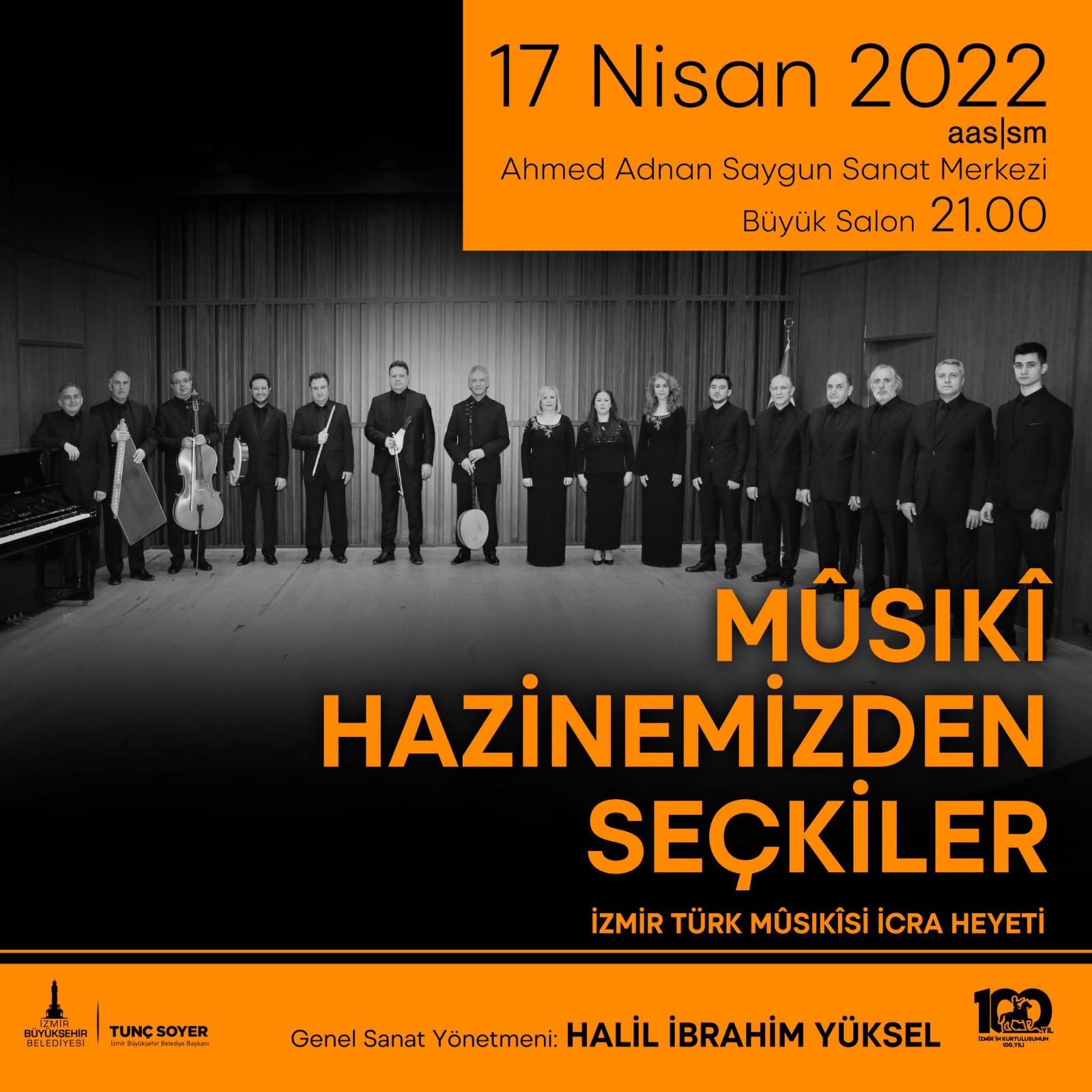 17 Nisan’da ise klasik icra anlayışıyla, farklı sanat kurumlarında yer alan ses ve saz sanatçılarından oluşan T.C. İzmir Türk Mûsıkîsi İcra Heyeti’nin “Mûsıkî Hazinemizden Seçkiler” etkinliği ücretsiz olarak İzmirliler ile buluşacak.