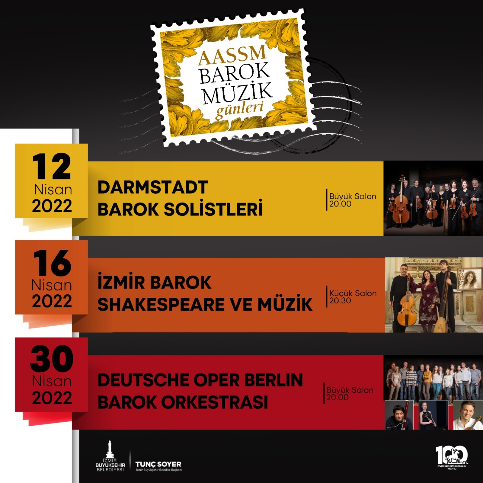 İzmir Büyükşehir Belediyesi Ahmed Adnan Saygun Sanat Merkezi’nde Barok Müzik Günleri başlıyor. Bugün saat 20.00’de “Darmstadt Barok Solisleri” konseri ile başlayacak etkinlik, 16 Nisan’da “Shakespeare ve Müzik”, 30 Nisan’da ise “Deutsche Oper Berlin Barok Orkestrası” ile devam edecek.