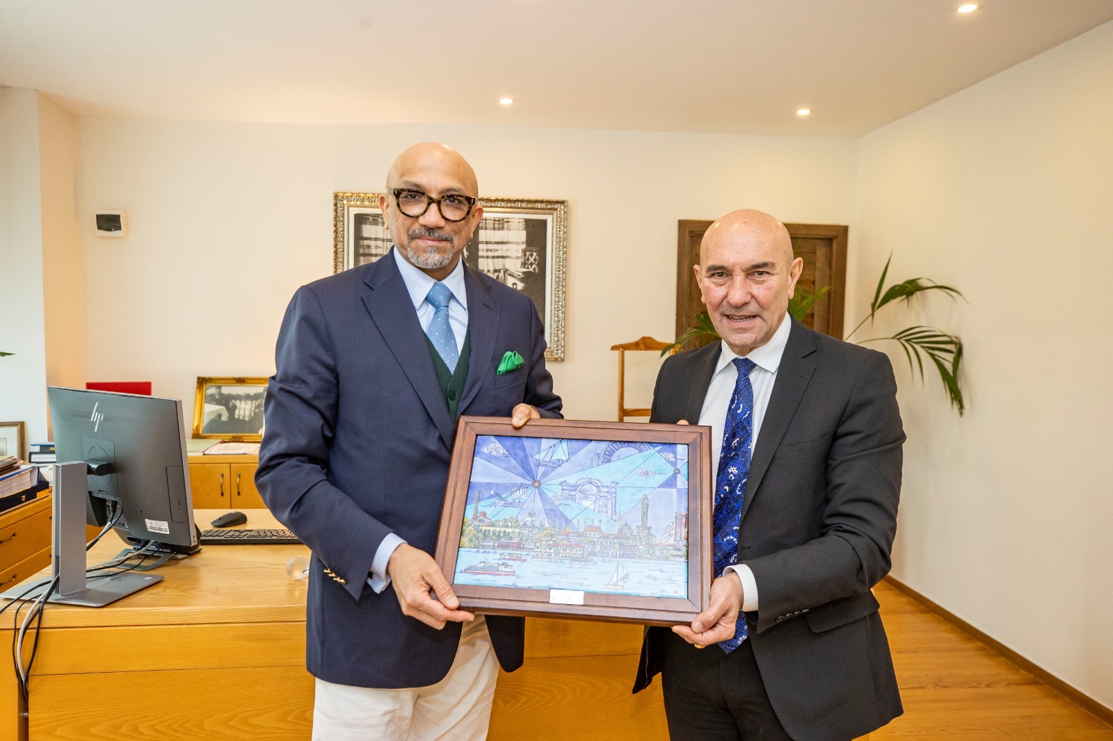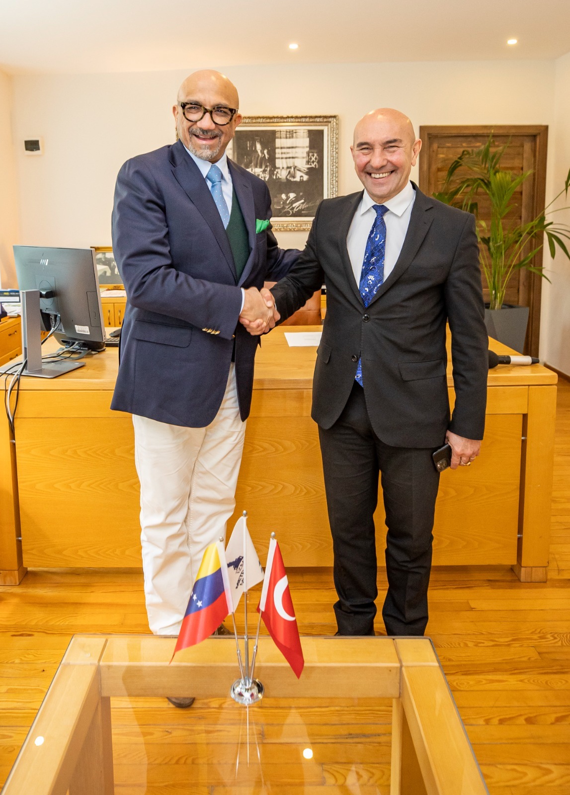 İzmir Büyükşehir Belediye Başkanı Tunç Soyer, Venezuela Ankara Büyükelçisi Jose Gregorio Bracho Reyes’i ağırladı. Büyükelçi Reyes, İzmir'deki gelişimi yakından izlediklerini ve örnek alacakları çok alan olduğunu söyledi.