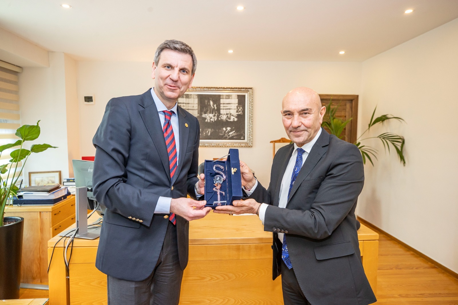 Serginin açılışının ardından FAO Orta Asya Alt Bölge Koordinatörü ve Türkiye Temsilcisi Dr. Viorel Gutu, İzmir Büyükşehir Belediye Başkanı Tunç Soyer’i makamında ziyaret etti. Ziyarete FAO Türkiye Temsilci Yardımcısı Dr. Ayşegül Selışık, Orta Asya, Azerbaycan ve Türkiye’de Gıda Kaybı ve İsrafının Azaltılması Projesi Ulusal Koordinatörü Nuray Akan Yaltıraklı, Gıda Kaybı ve İsrafı-Değer Zinciri ve Ortaklıklar Uzmanı Aslıhan Denge ve Ulusal İletişim Uzmanı Özlem Türktan Yener katıldı.