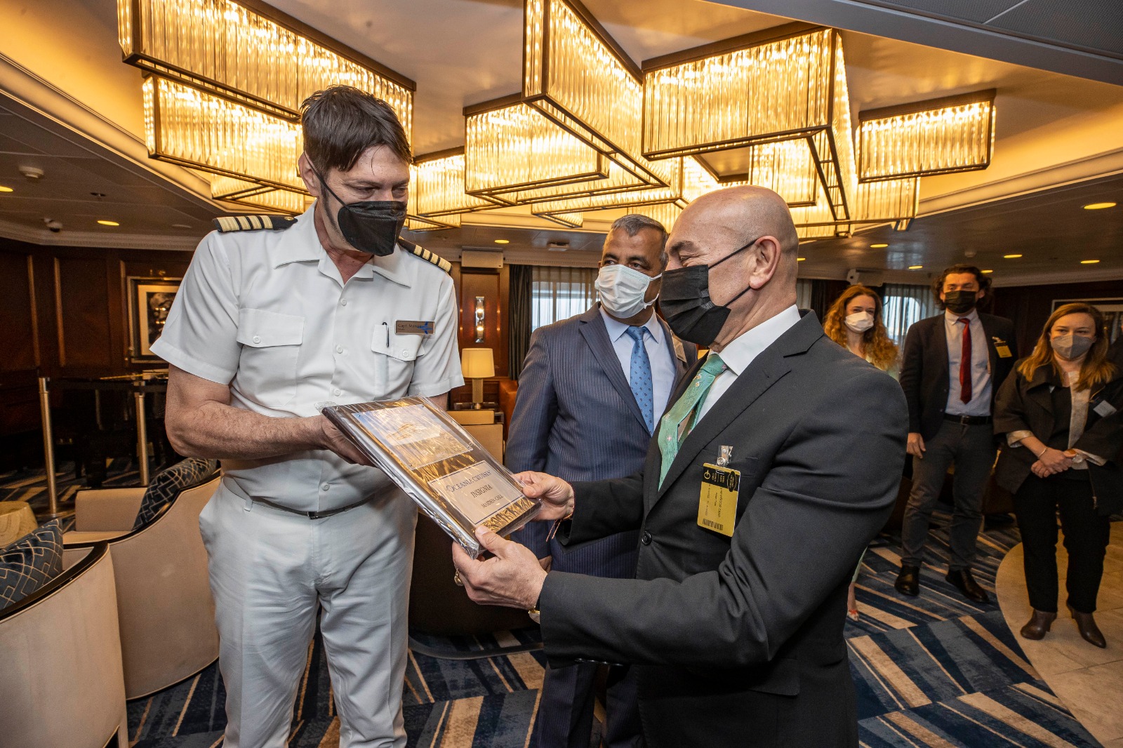 Bu yıl içerisinde İzmir’e 34 geminin geleceğini ifade eden Başkan Tunç Soyer, “Bu ilk gelen en küçük gemi. 6 aylık dünya turunda İzmir’e geldi. Bu konuda çok emek var. İzmir Ticaret Odası, İzmir Kalkınma Ajansı ile kruvaziyer gemilerini buraya getirmek için çok yoğun süreç geçirdik. Bu ilki. 34 sefer daha olacak. 3 Mayıs’ta büyük gemi gelecek” diye konuştu.