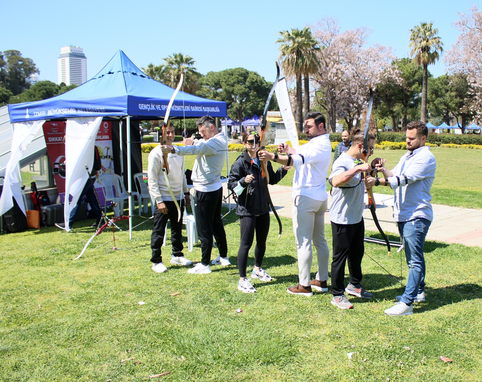 Dört gün devam edecek Sporfest İzmir, Kültürpark’ı festival havasına büründürdü. 12 federasyon, kurdukları özel alanlarda farklı spor branşlarını deneyimleme fırsatı sunmaya başladı. Kız çocuklarına futbol eğitiminin de verildiği Sporfest İzmir etkinlikleri çerçevesinde kano, okçuluk, buz hokeyi, dağcılık, 3x3 streetball, halk dansları ve modern dans, hentbol, sualtı görüntüleme, mini voleybol, yelken ve bisiklet gibi branşlara ait deneyimleme alanları oluşturuldu. Ayrıca turnuvalar ve gösterilerle renklenen Sporfest İzmir’de zumba, yoga, capoeira, nefes ve meditasyon, fit dans, bodyfit etkinlikleri, söyleşiler ve konserler de yer alıyor.
