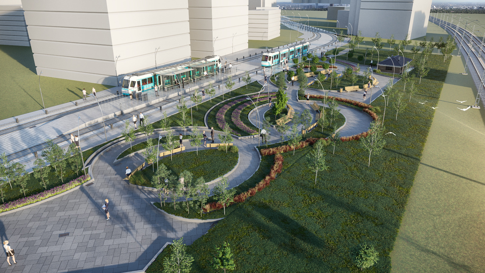 Ray döşeme çalışmalarının ardından Semra Aksu Caddesi ve çevresi baştan sona yenilenecek. Yaya ulaşımının güvenliğini ve konforunu artıracak düzenleme kapsamında cadde belirli saatlerde araç trafiğine kapatılarak yayalaştırılacak. Yayalaştırılan caddenin bir bölümünde halkın dinlenip nefes alacağı içinde yeşil alanların ve peyzaj düzenlemelerinin yer aldığı meydan oluşturulacak. Çiğli İZBAN İstasyonu yanında yer alan mevcut otobüs aktarma merkezi Ataşehir Mahallesi Muhtarlığı’nın yanına alınacak. Burası otobüs park alanı ve hareket merkezi olarak hizmet verecek. Yenilenen aktarma merkezi yeşil alanları, dinlenme ve bekleme alanları ile kentlinin yaşam kalitesini yükseltecek.