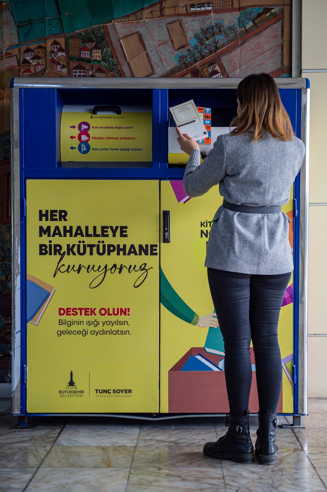 İzmir Büyükşehir Belediye Başkanı Tunç Soyer’in bilgiye erişimde fırsat eşitliği ilkesiyle başlattığı “Her Mahalleye Bir Kütüphane” kampanyası için kitap bağışı artık daha kolay. İzmirliler bundan böyle belirli metro istasyonları ve iskelelerdeki kumbaralar aracılığıyla da bağışlamak istedikleri kitapları teslim edebilecek.