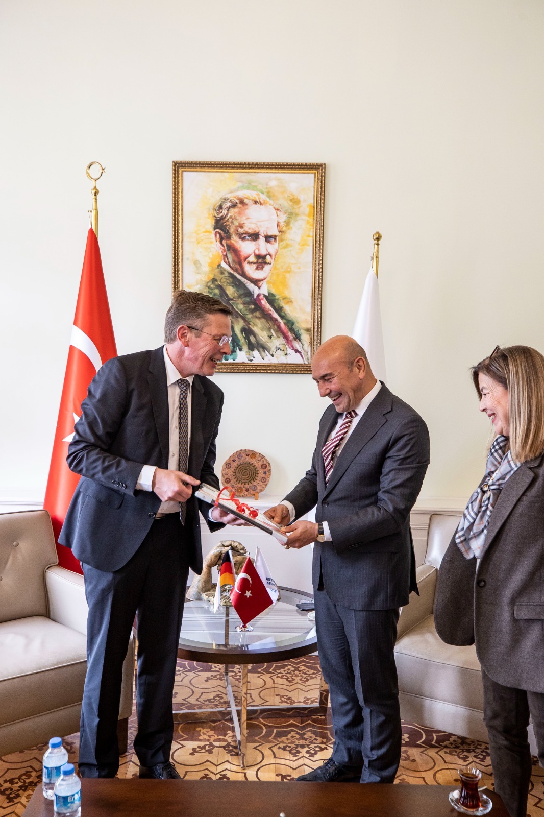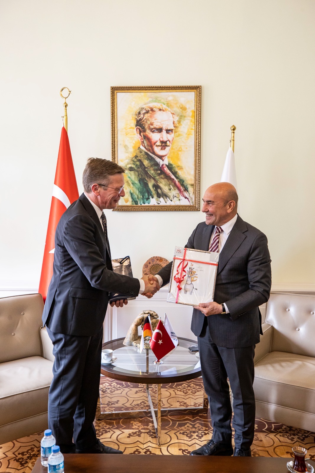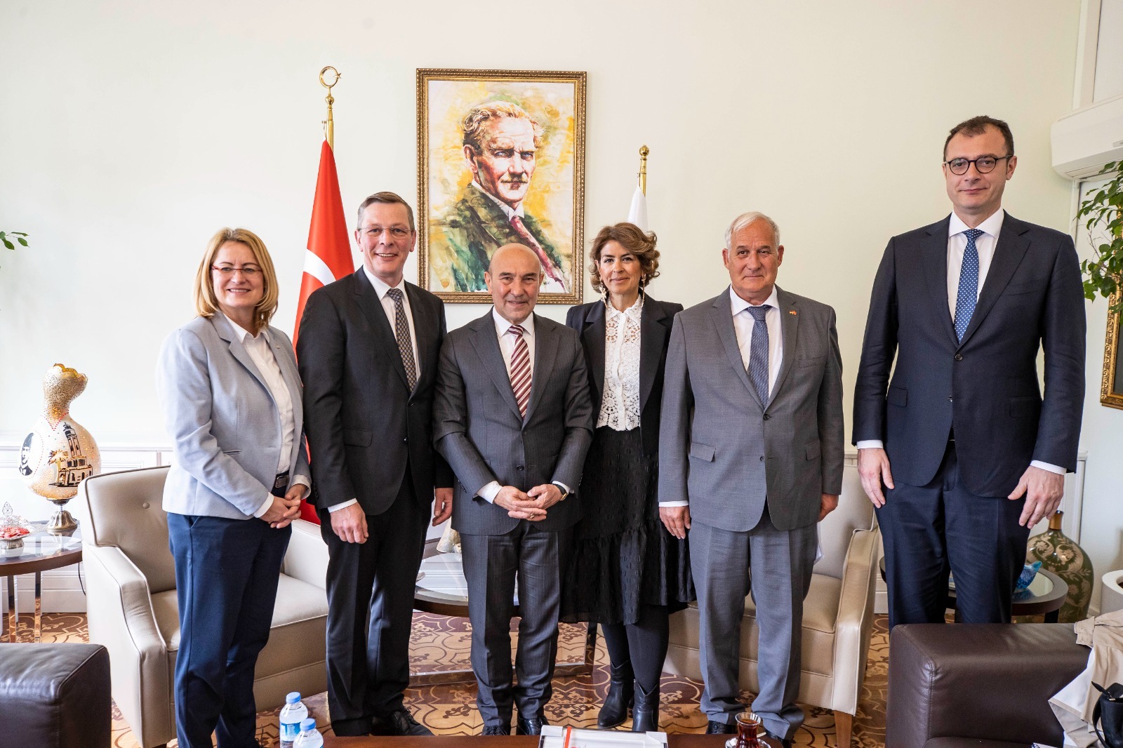İzmir Büyükşehir Belediye Başkanı Tunç Soyer, Bremen Parlamento Başkanı Frank Imhoff’u ve beraberindeki heyeti konuk etti. İzmir Büyükşehir Belediyesi Egemenlik Evi’ndeki başkanlık makamındaki toplantıya Frank Imhoff’a Bremen Parlamentosu Başkan Yardımcıları Antje Grotheer, Sülmez Doğan, Almanya İzmir Başkonsolosu Dr. Detlev Wolter ve dış ilişkiler heyeti eşlik etti.