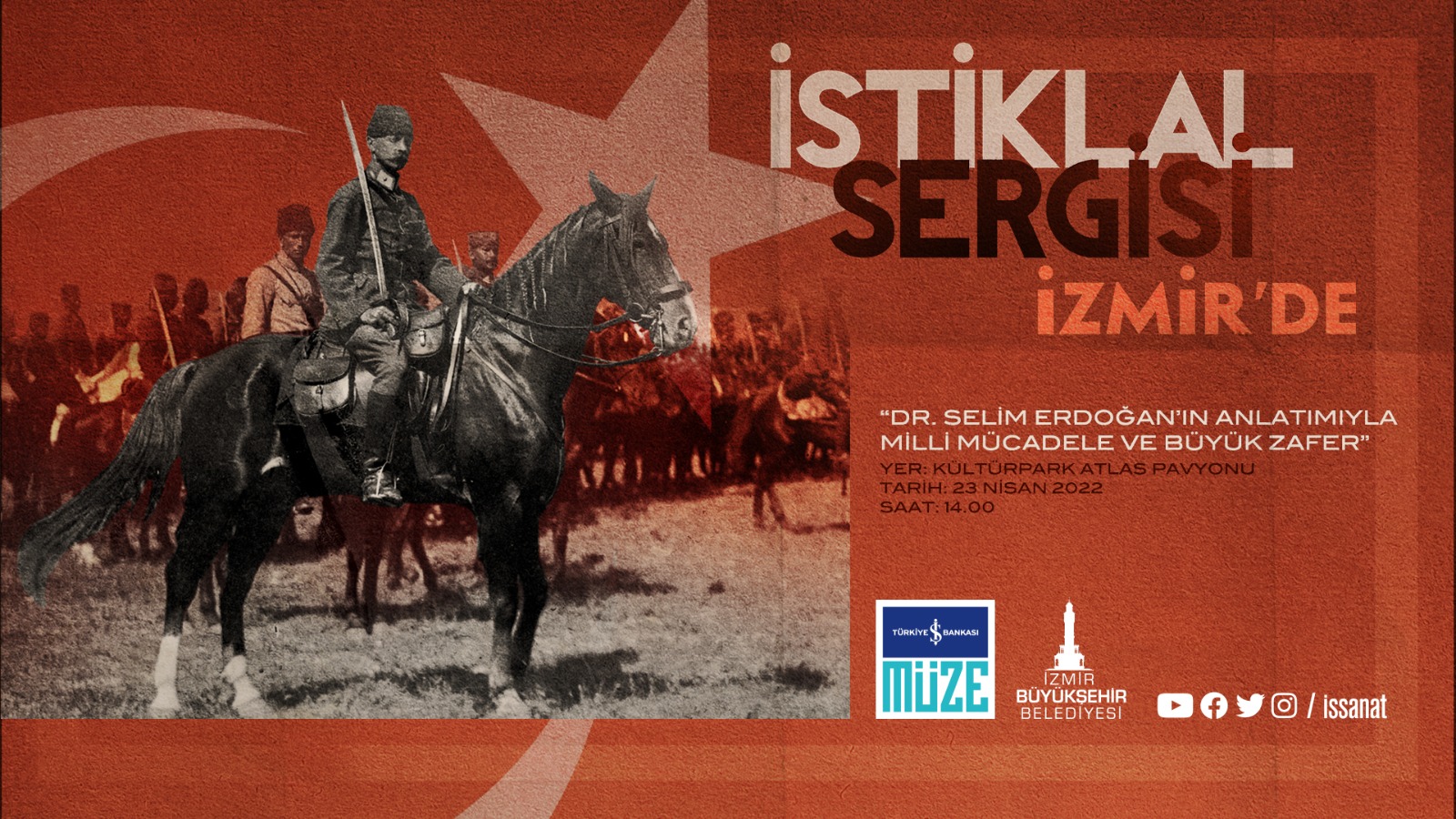 İzmir Büyükşehir Belediyesi, İş Bankası ve İş Sanat işbirliğiyle açılan ve Milli Mücadele’ye dair en kapsamlı sergi olan “Büyük Zafer’in 100. Yılına Doğru İstiklal Sergisi”nde Ulusal Egemenlik ve Çocuk Bayramı için özel bir program da hazırlandı. 23 Nisan Cumartesi günü Kültürpark Atlas Pavyonu’ndaki sergiye gelen ziyaretçiler, harp coğrafyacısı Dr. Selim Erdoğan rehberliğinde Milli Mücadele ve Büyük Zafer’in detaylı anlatımıyla sergiyi gezebilecek.