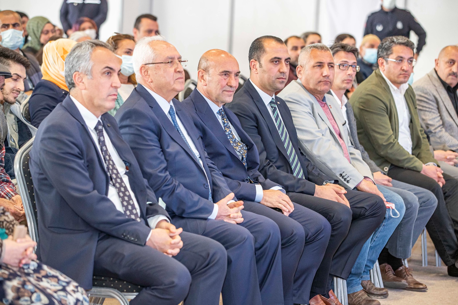 İzmir Büyükşehir Belediye Başkanı Tunç Soyer törende yaptığı konuşmada göreve geldiği günden beri İzmir’in çözülemez denilen ne kadar sorunu varsa çözmek için önemli adımlar attıklarını belirterek “İzmir’in kentsel dönüşüm meselesi önümüzde duran en büyük işlerden biriydi. Biz, inşaat sektörünün yaşadığı büyük sıkıntılara rağmen elimizi taşın altına koyduk. Kentsel dönüşüm projelerine iş insanlarının kurduğu yapı kooperatiflerini dahil ettik. Belediye şirketimiz İZBETON’a verdiğimiz yetkiyle İzmir’in farklı bölgelerinde kentsel dönüşüm süreçlerine ve inşaatlara hız verdik. Son altı ayda çalışmalarımıza daha da ivme kazandırdık. İzmir’in bu sorununu kökünden çözmeye kararlıyız. İzmir'in her yerinde modern, konforlu, bir kentsel dönüşümü yaşatacağız. Kim ne derse desin. İzmir’de, kentsel dönüşümde, maya tuttu ve devam ediyor. Bu kriz ortamında, imkansızlıklar karşısında çaresiz olmadık. Çare ürettik. Kimsenin hakkını ranta, müteahhide kurban etmeden, vatandaşlarımızla müteahhitleri karşı karşıya getirmeden, belediyemiz garantörlüğü altında depreme dayanıklı, yepyeni ve yemyeşil mahalleleri kurmaya devam edeceğiz. Hızımızı aldık, kesmeye de hiç niyetimiz yok” dedi.