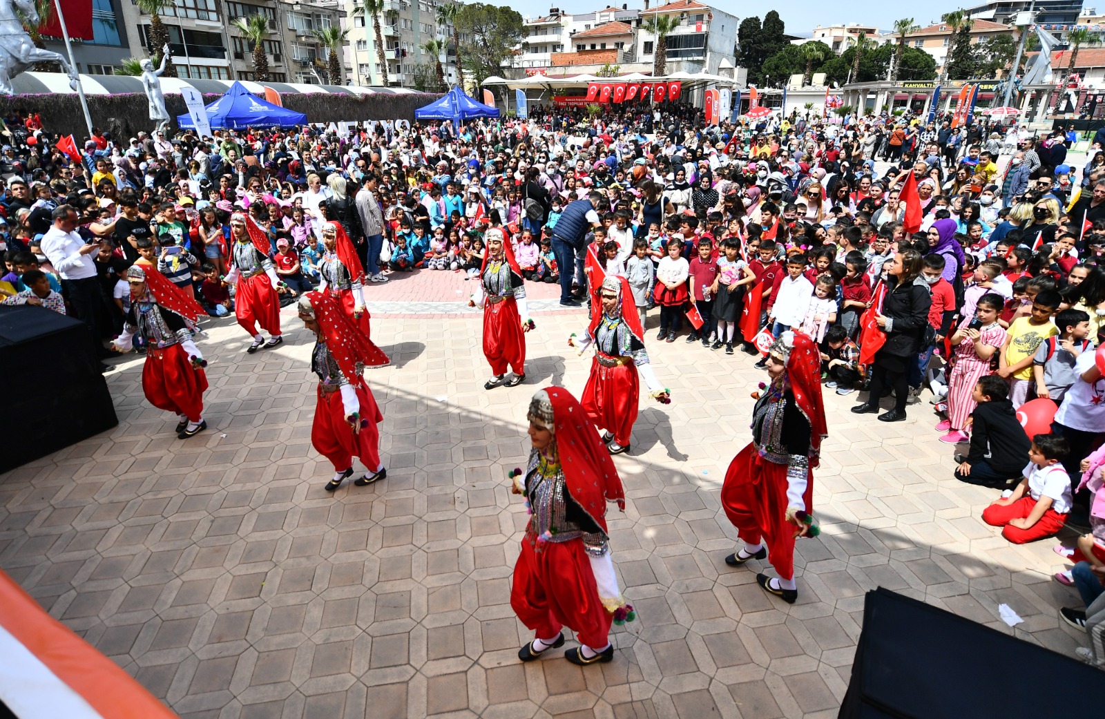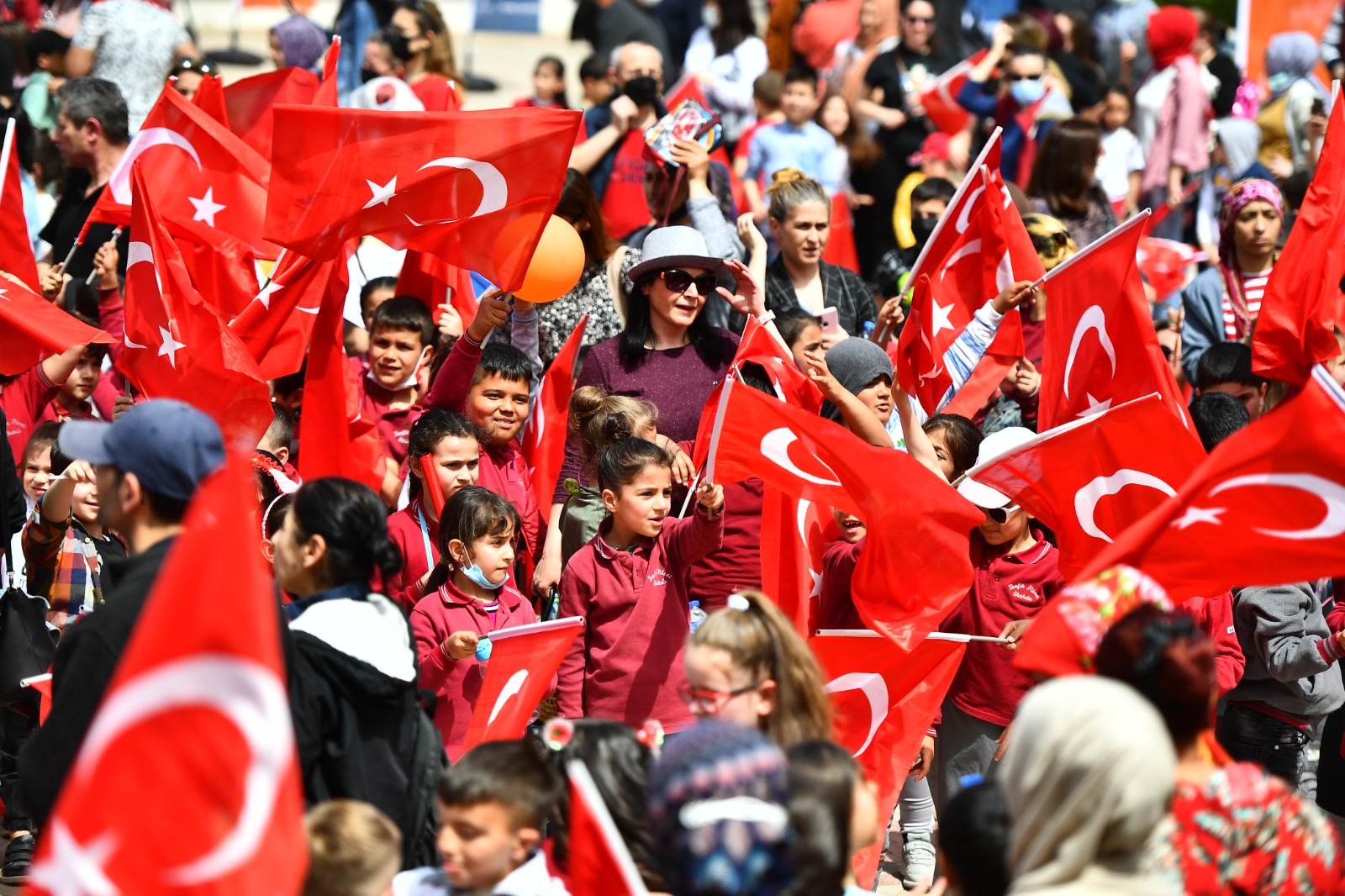 23 Nisan Ulusal Egemenlik ve Çocuk Bayramı'nın 102. yılı İzmir’de coşku içinde kutlanıyor. Menemen Cumhuriyet Meydanı’nda düzenlenen törende çocuklar ellerinde Türk bayraklarıyla yürüdü. Kutlamalarda Seferihisar Çocuk Belediyesi Halk Oyunları grubu, İzmir Büyükşehir Belediyesi Ritim ve Dans Topluluğu ve Çocuk Tiyatrosu sahne aldı. Çocuklarla Mutlu Şarkılar konseri ise eğlenceli anlar yaşattı.