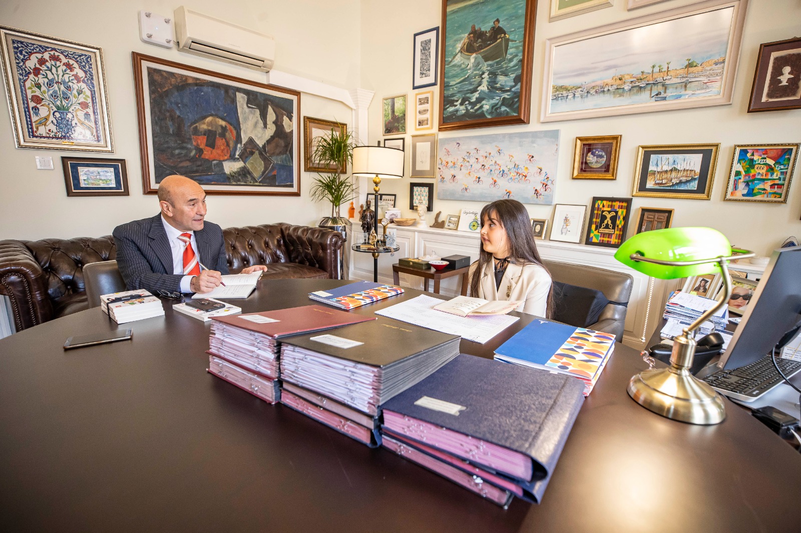 İzmir Büyükşehir Belediye Başkanı Tunç Soyer, 23 Nisan Ulusal Egemenlik ve Çocuk Bayramı nedeniyle koltuğunu üç öğrenciye bıraktı. Sezgin Güney, Enes Peker ve İzmir Dal hayata geçirecekleri projeleri anlattı. Minik başkanlar ilk talimatlarını da verdi.