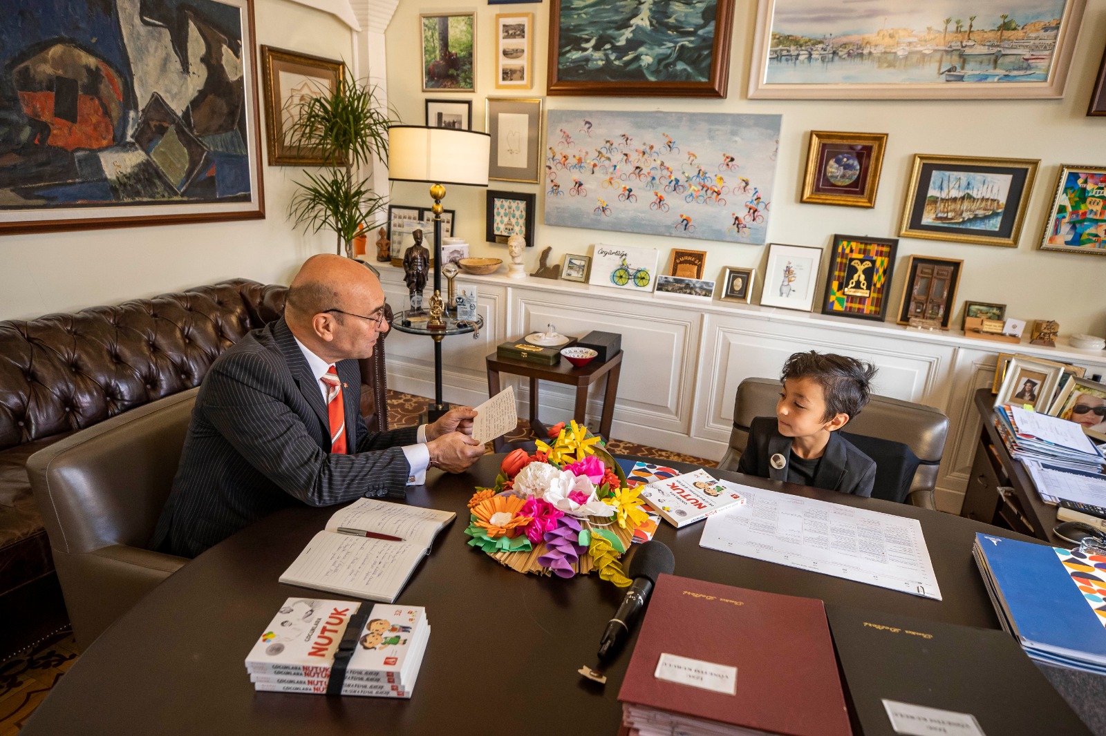 İzmir Büyükşehir Belediye Başkanı Tunç Soyer, 23 Nisan Ulusal Egemenlik ve Çocuk Bayramı nedeniyle koltuğunu öğrencilere bıraktı. İzmir Özel Tevfik Fikret Okulları 2. sınıf öğrencisi 8 yaşındaki İzmir Dal, Ömer Özkan İlkokulu 1. sınıf öğrencilerinden 7 yaşındaki Sezgin Güney ve Enes Peker başkanlık koltuğunu paylaştı. Velilerinin de katıldığı programda, çocuklar teker teker Başkan Tunç Soyer'in koltuğuna oturdu.