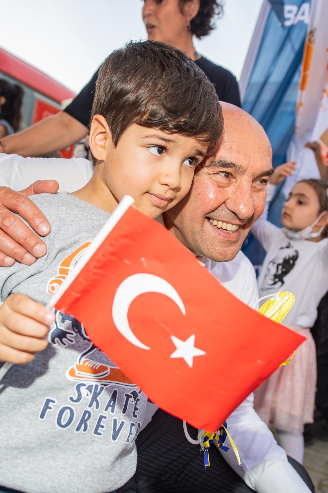 Sahneye gelerek İzmirli çocukları “İyi bayramlar” diyerek selamlayan Büyükşehir Belediye Başkanı Soyer, “Ne kadar güzel görünüyorsunuz bir bilseniz. Şahanesiniz” dedi. Kendisine kalp işareti yapması için seslenen bir miniğin talebine cevap veren Başkan Soyer, “Benim kalbim sana gelsin” diyerek yanıt verdi. Soyer ayrıca, “Hepinizi sevgiyle kucaklıyorum. Bayramınız kutlu olsun” diye konuştu.