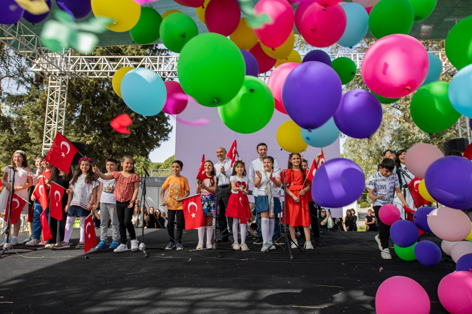 İzmir Büyükşehir Belediyesi'nin 23 Nisan Ulusal Egemenlik ve Çocuk Bayramı için düzenlediği etkinlikler kentte coşkulu kutlamalara sahne oldu. Kültürpark'da çocuklar için düzenlenen programlar ise karnaval havası estirdi. İzmir Büyükşehir Belediye Başkanı Tunç Soyer'in de yer aldığı 23 çocukla birlikte çekilen “İzmir İçin Söyle Çocuk Korosu” videosunun tanıtımı da Kültürpark'ta yapıldı. Tanıtım programına İzmir Büyükşehir Belediye Başkanı Tunç Soyer eşi Neptün Soyer ile birlikte katıldı. Videoda yer alan çocukların verdiği konser alandaki binlerce miniğe coşku dolu dakikalar yaşattı. Çocuk Oyuncu Berat Efe Parlar’ın sunuculuğunda düzenlenen etkinlikte ayrıca Ezo Sunal’ın Lalala Çocuk Konseri de büyük ilgi gördü.